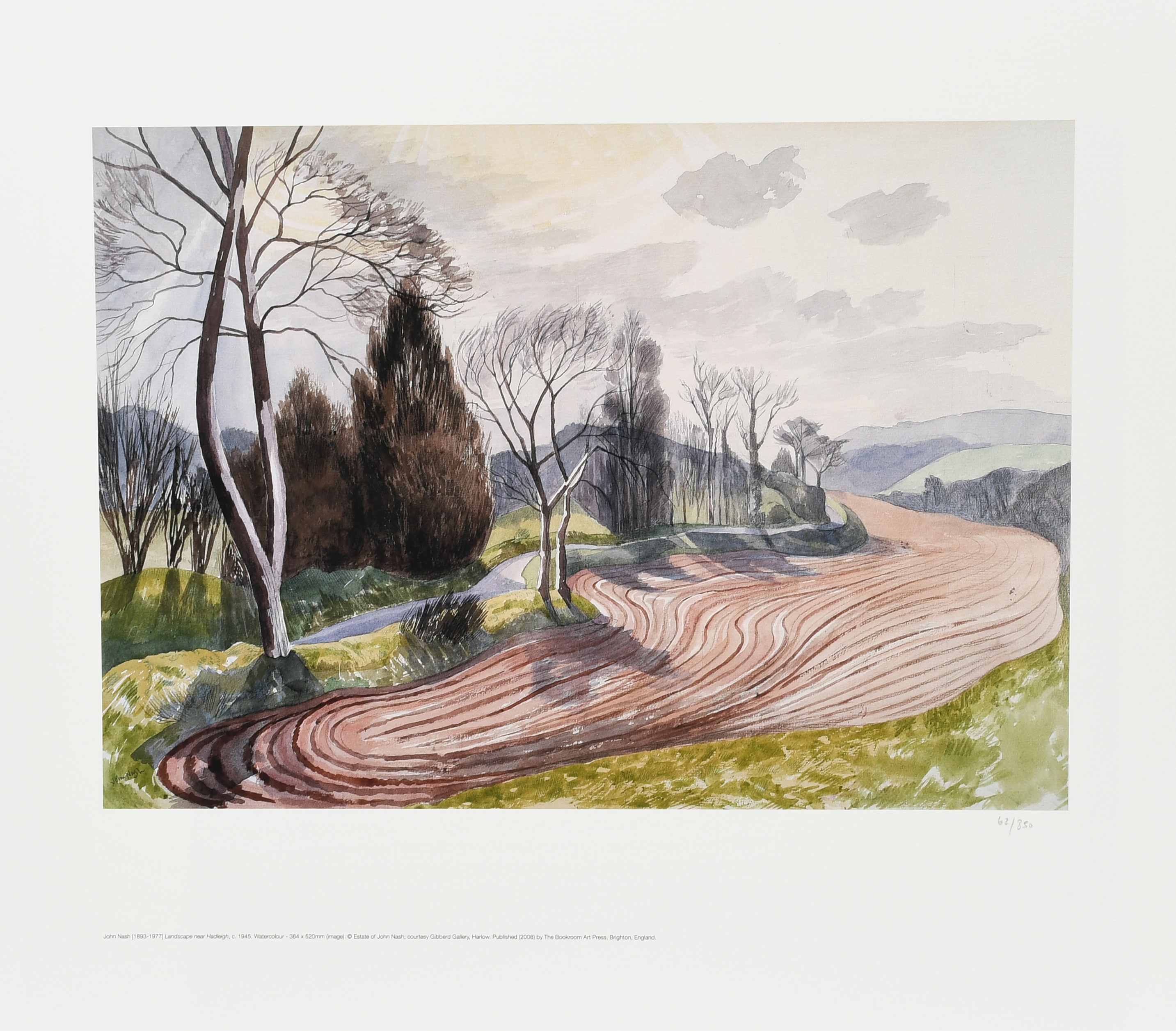 a modern glicee limited edition print on paper, published by the Bookroom Art Press, and The Train by Claughton Pellew and Liverpool Street Station by Edward Bawden, two modern glicee limited edition prints