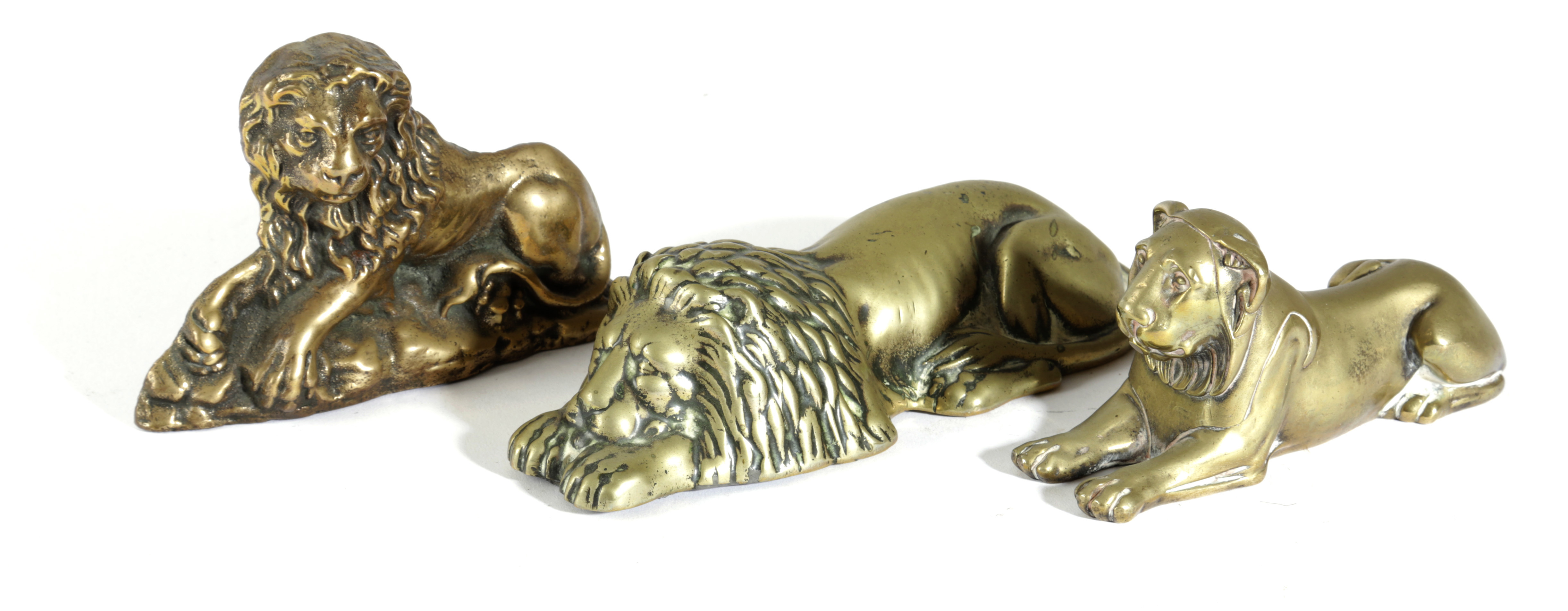 THREE BRASS MODELS OF LIONS