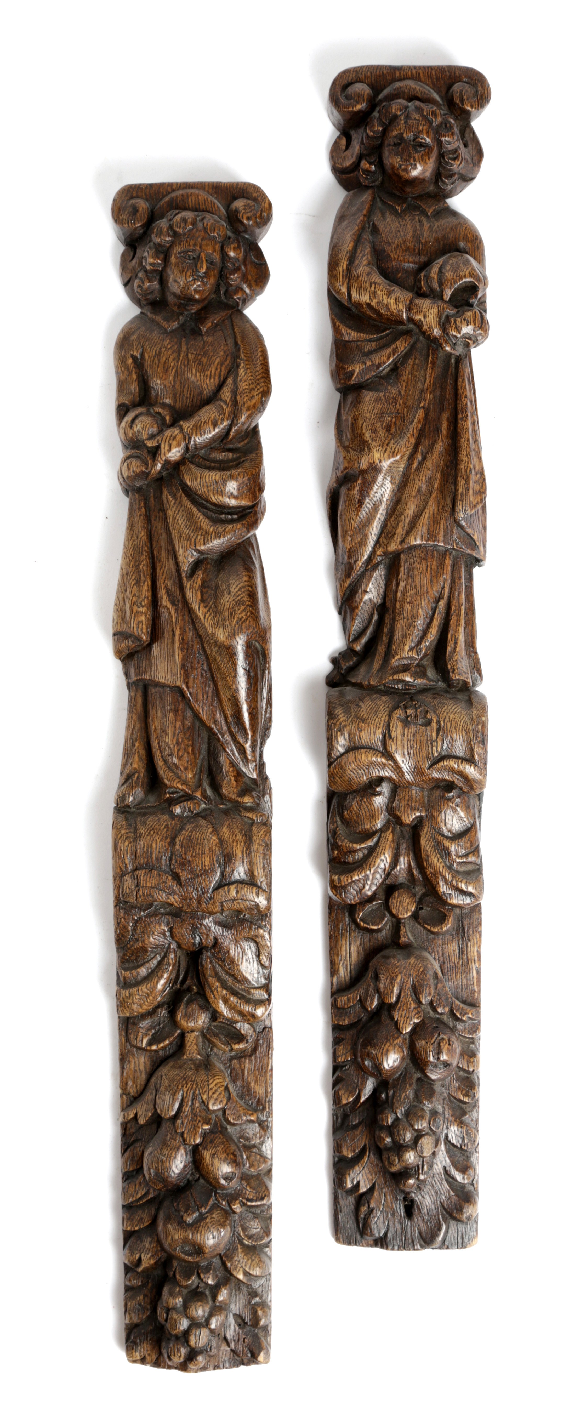 with a saint figure, above a green man mask and ribbon tied garlands of fruit and leaves (2)