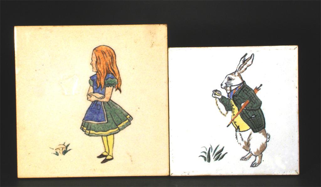 'Alice in Wonderland' four tiles designed by Charles Francis Annesley Voysey