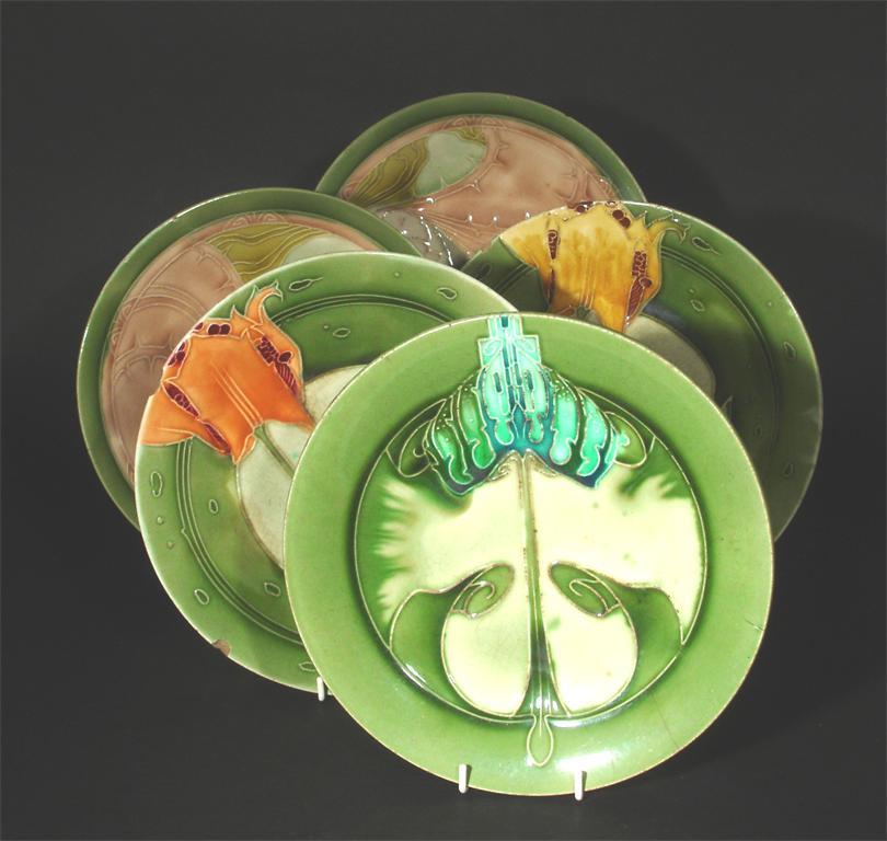Five various Minton Secessionist plates designed by John Wadsworth