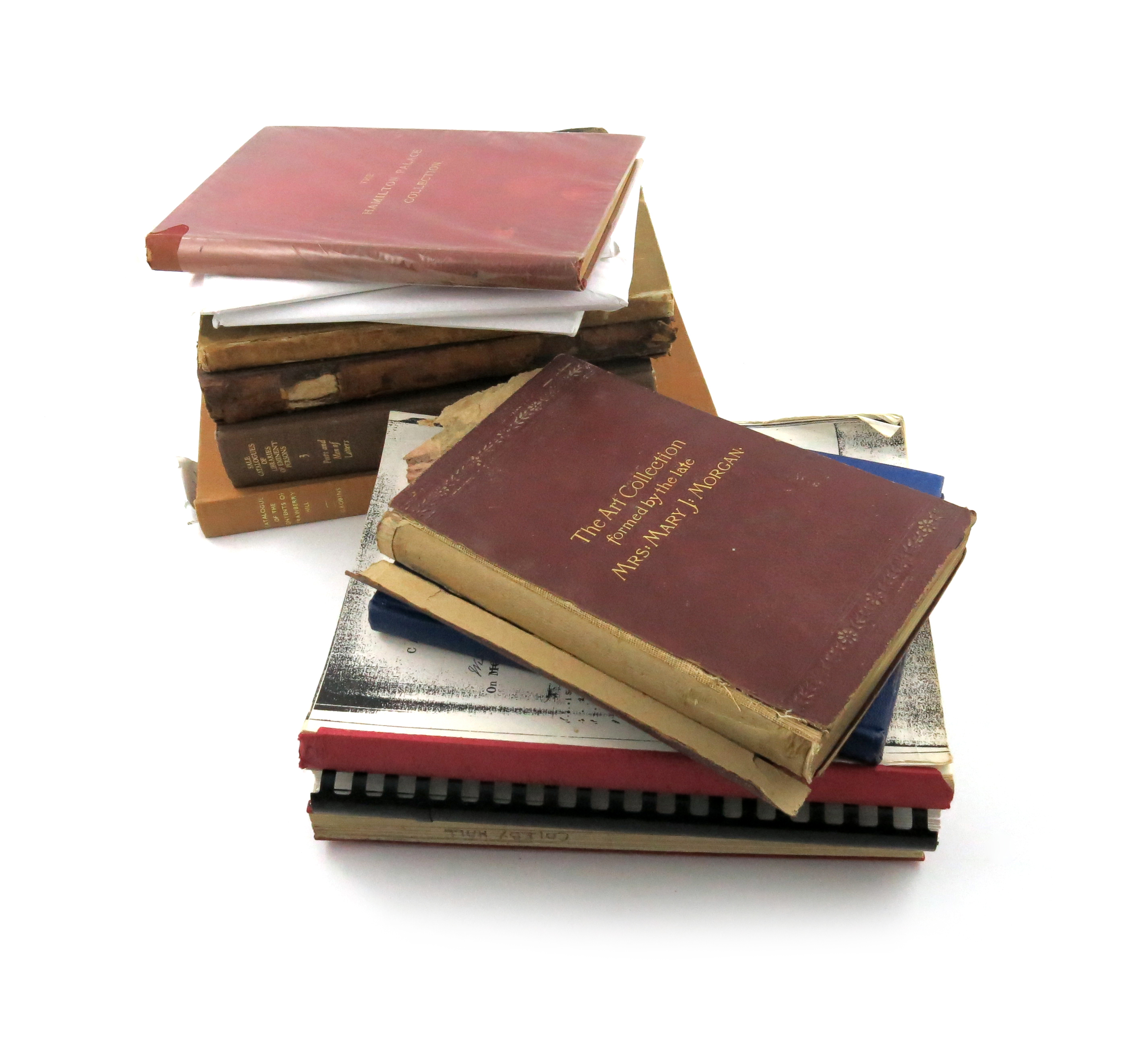 including: Strawberry Hill, 25 April, 1842, rebound, Sir James Vallentin Collection, Christie's June 7 1870, rebound, The Stowe Catalogue, Priced and Annotated, by Henry Forster, 1848, The Collection of Sir Julian Goldsmid, Bart, M.P deceased, June 29 1896, The Hamilton Palace Collection, Christie's June 19, 1882, The Catalogue of The Art Collection of Mrs Mary J. Morgan, 1886, plus a later copy of the Beckford Letters, and photocopies of Jewels and Plate of Messrs. Rundell, Bridge and Co., 13 July 1842, and three photocopies of 18th century catalogues of The Earl of Sussex, 173?, Earl of Ashburnham, 24 May 1737 and Sir William Stanhope, 25 April 1733, and one other volume. (13)