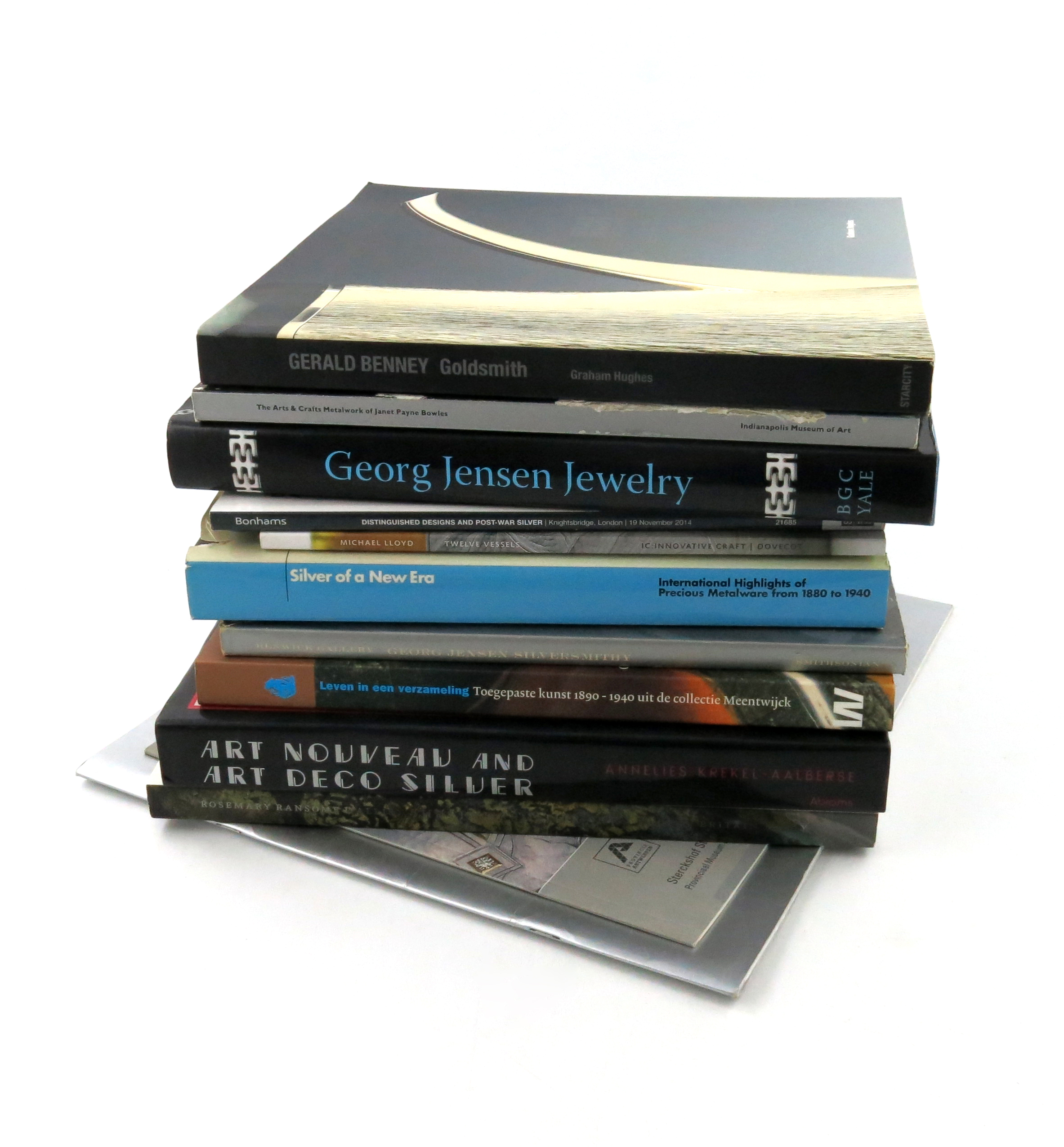 including: Treasures of Today, Silver of a New Era, Georg Jensen Jewellery, Art Nouveau and Art Deco Silver, Georg Jensen Hollowware, Chicago Metal-smiths, Christopher Dresser, Collecting by design, Josef Hoffam Adolf Loos, Gerald Benney, and other volumes. (qty)