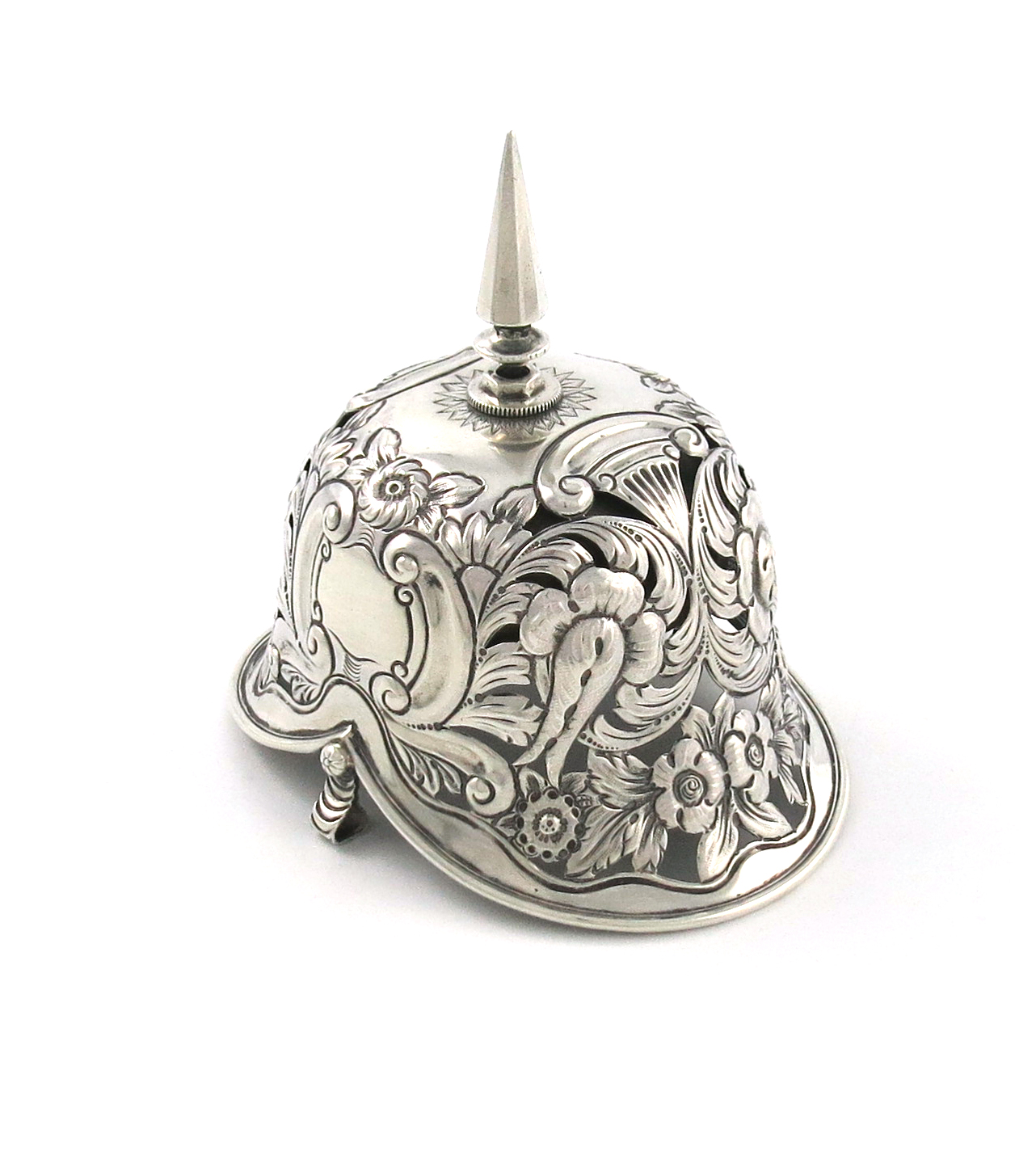 A late-Victorian novelty silver helmet table bell
