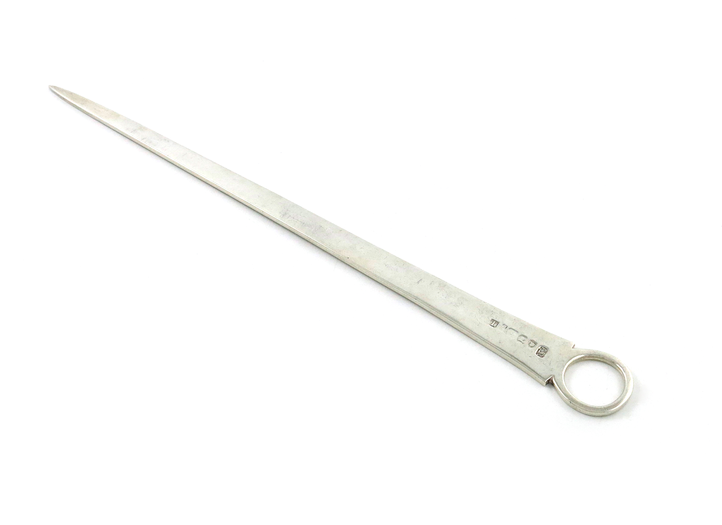 heavy tapering form, plain ring handle, initialled, length 32.3cm, approx. weight 3.9oz.
