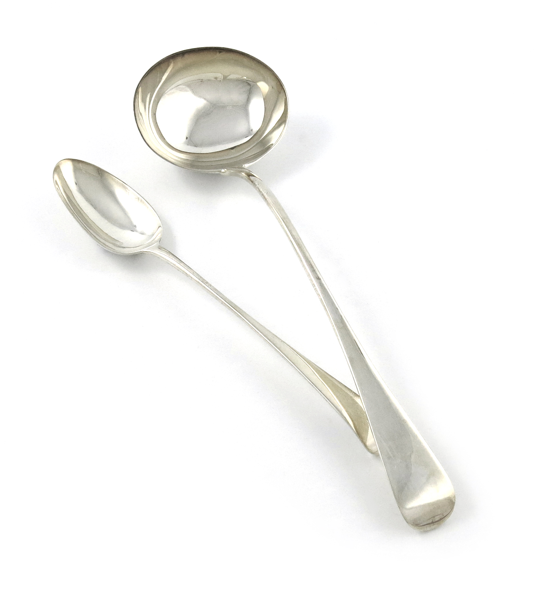 oval bowl, plain terminal, plus a George III Old English pattern basting spoon, by Thomas & William Chawner, probably London 1771, approx. weight 10.5oz. (2)