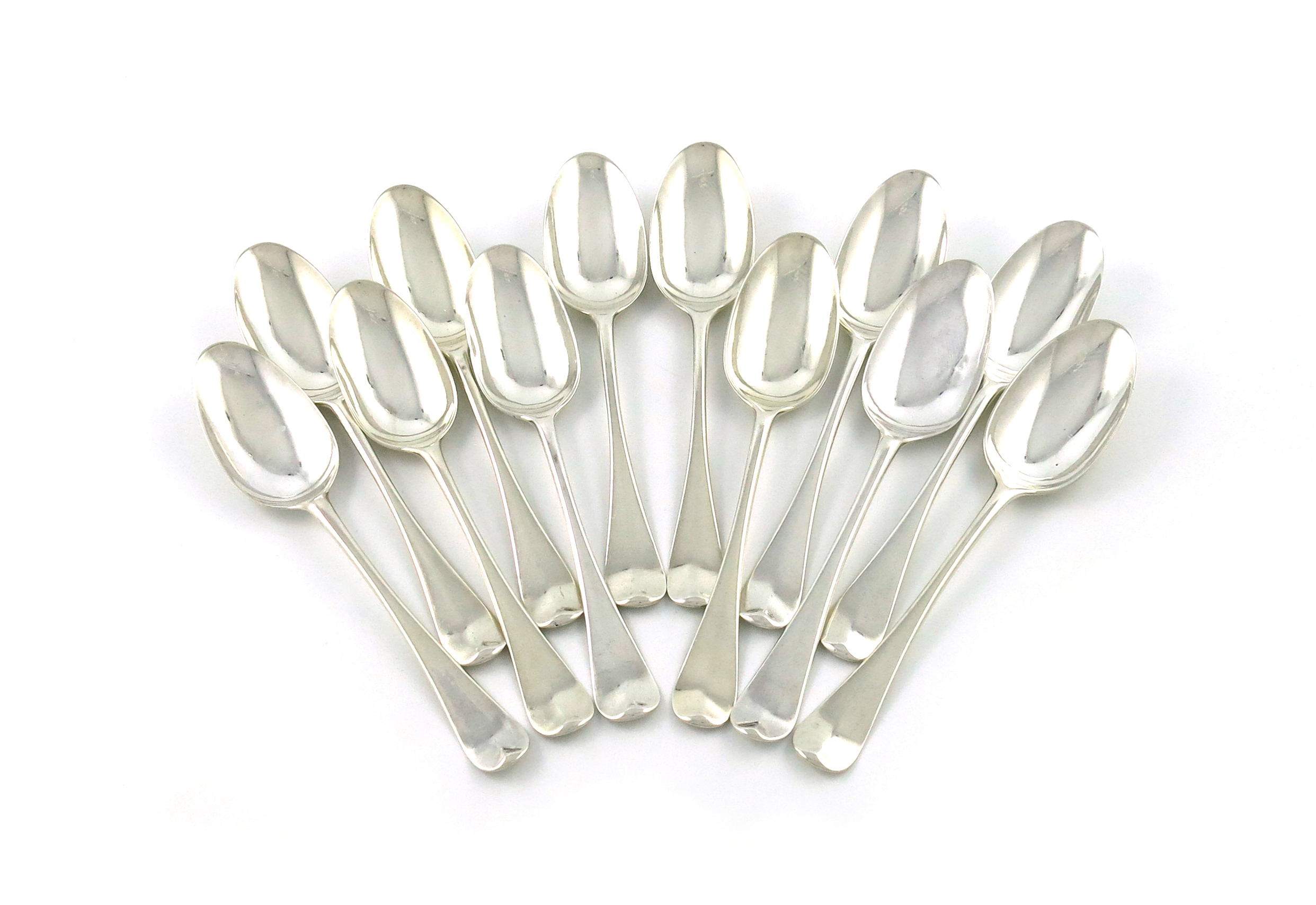 A matched set of twelve George II silver Hanoverian pattern dessert spoons