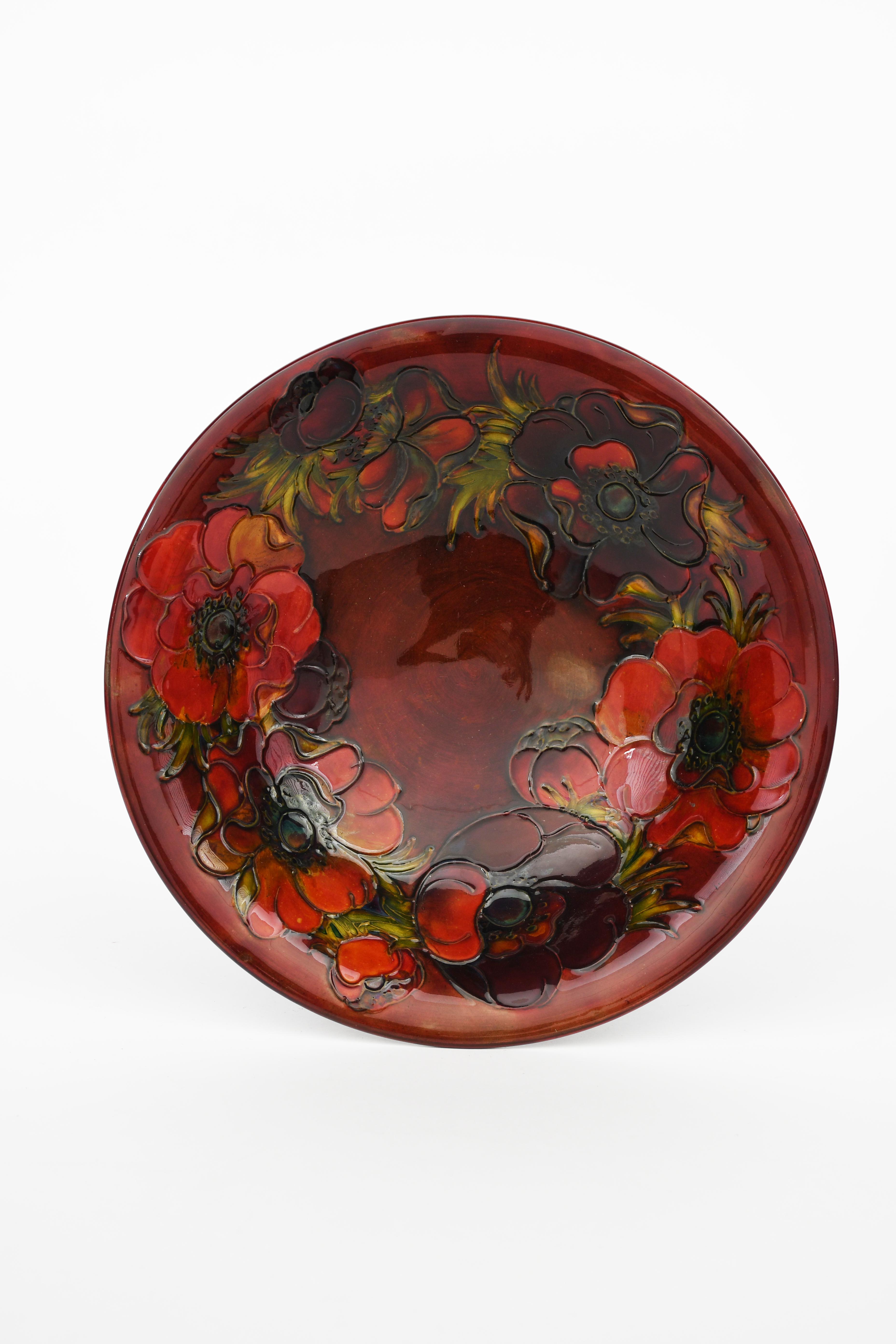'Anemone' a Moorcroft Pottery bowl designed by Walter Moorcroft, painted in colours under a flambe red glaze, impressed factory marks, painted blue signature, 24.5cm. diam.