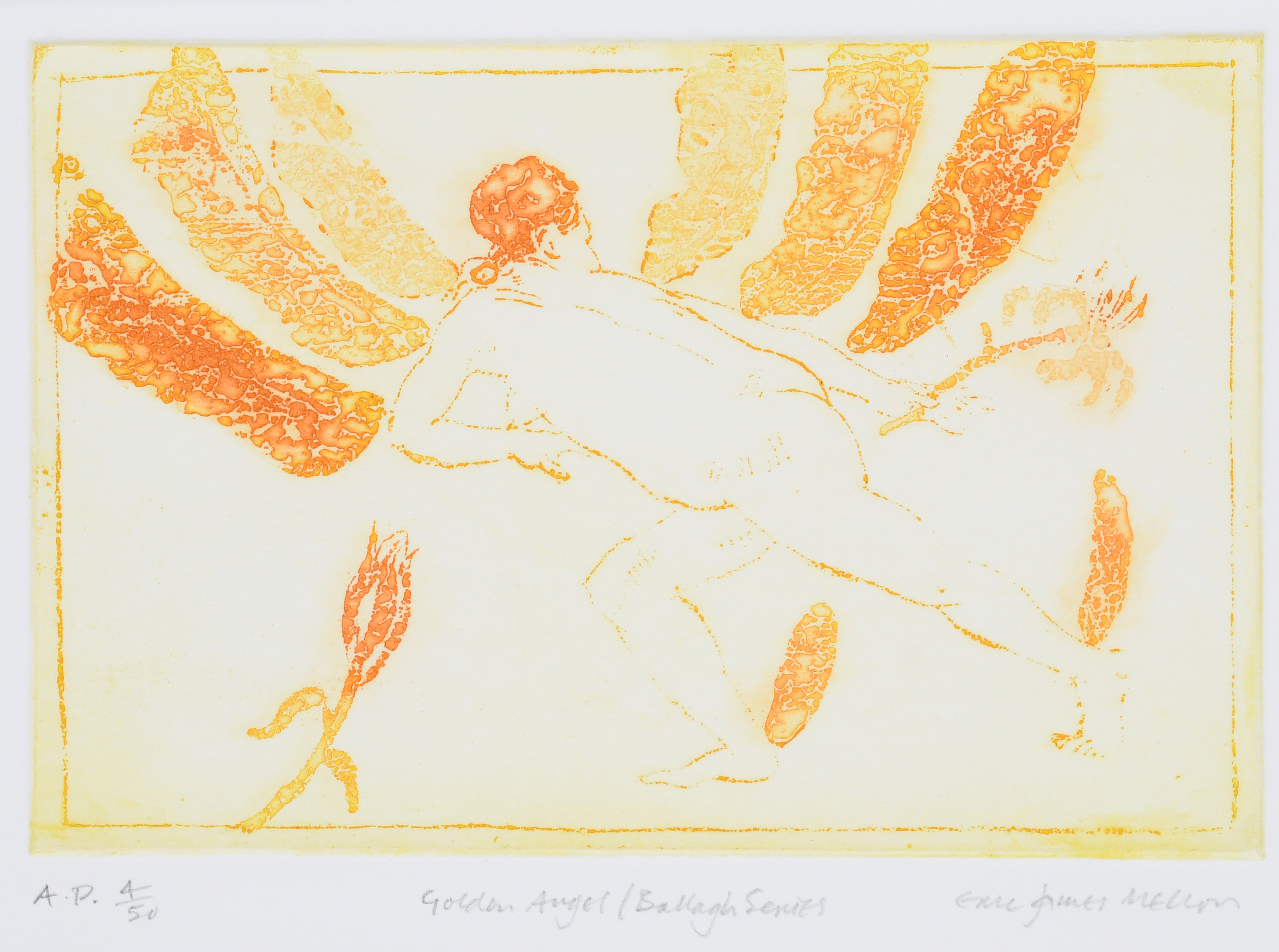 aquatint on paper, artist proof, mounted, and 'Golden Angel/Ballagh Series' aquatint by Eric James Mellon