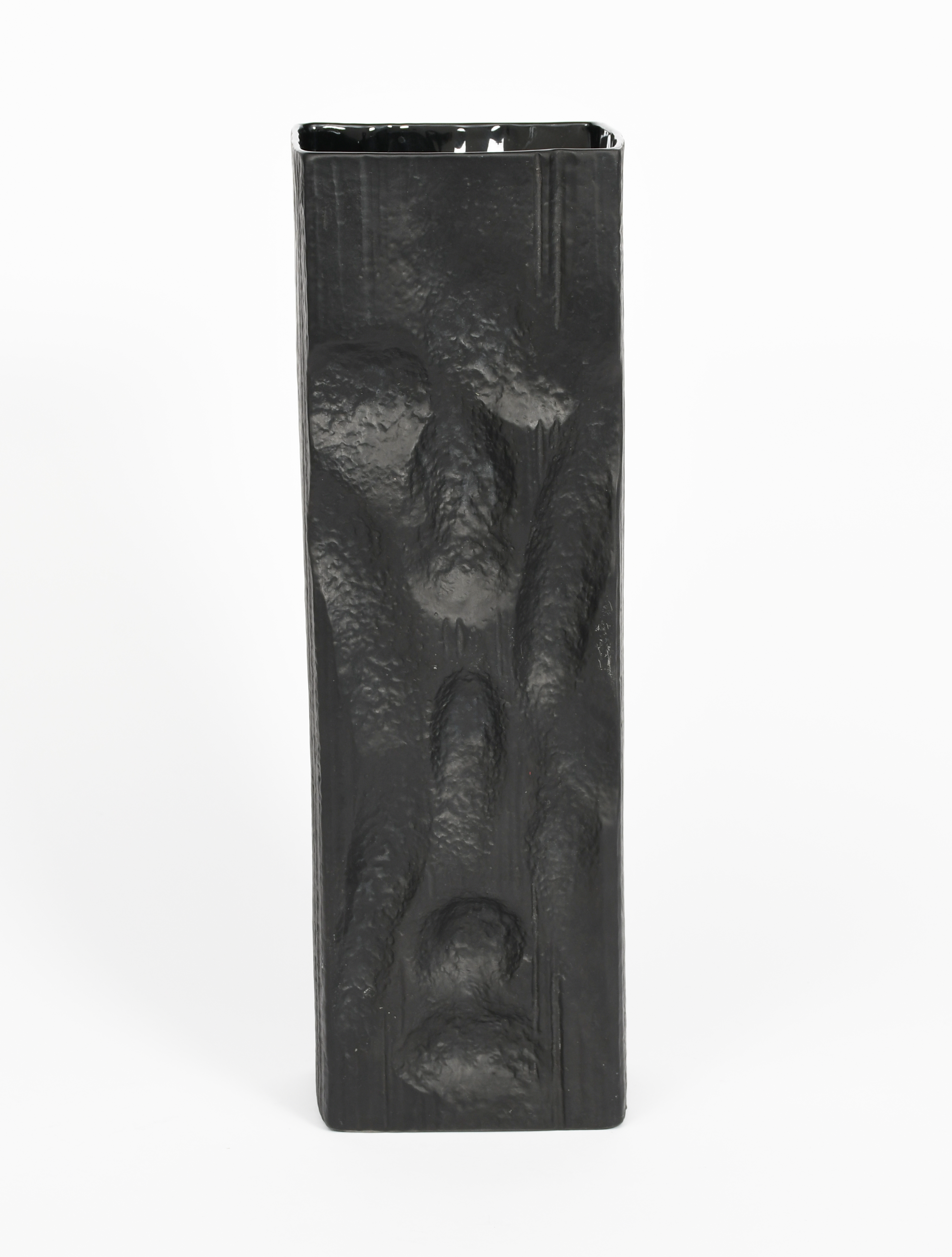 A Rosenthal Studio Line vase designed by Martin Freyer, tall rectangular black body, cast in relief with textured design, printed factory marks, facsimile signature, 44cm. high