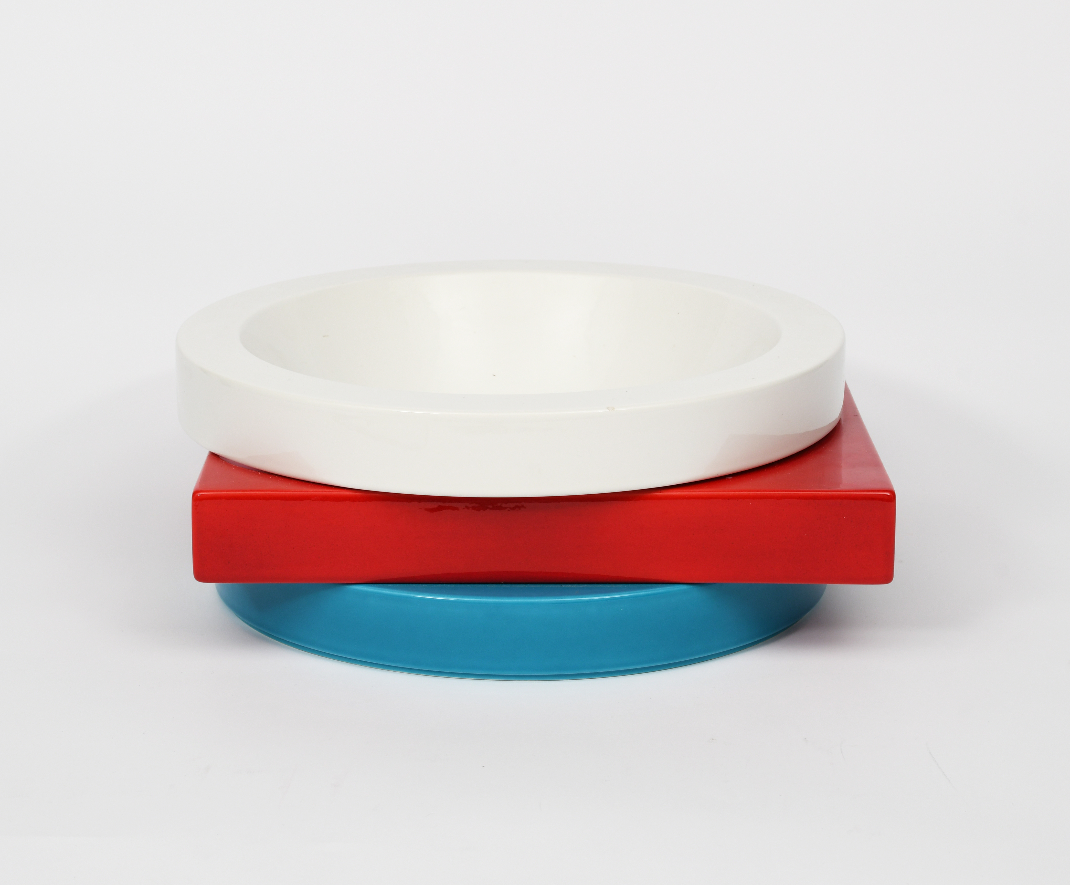 A Memphis Broccoli bowl designed by Marco Zanini, designed 1985, red, white and blue elements, printed factory mark, 33cm. square