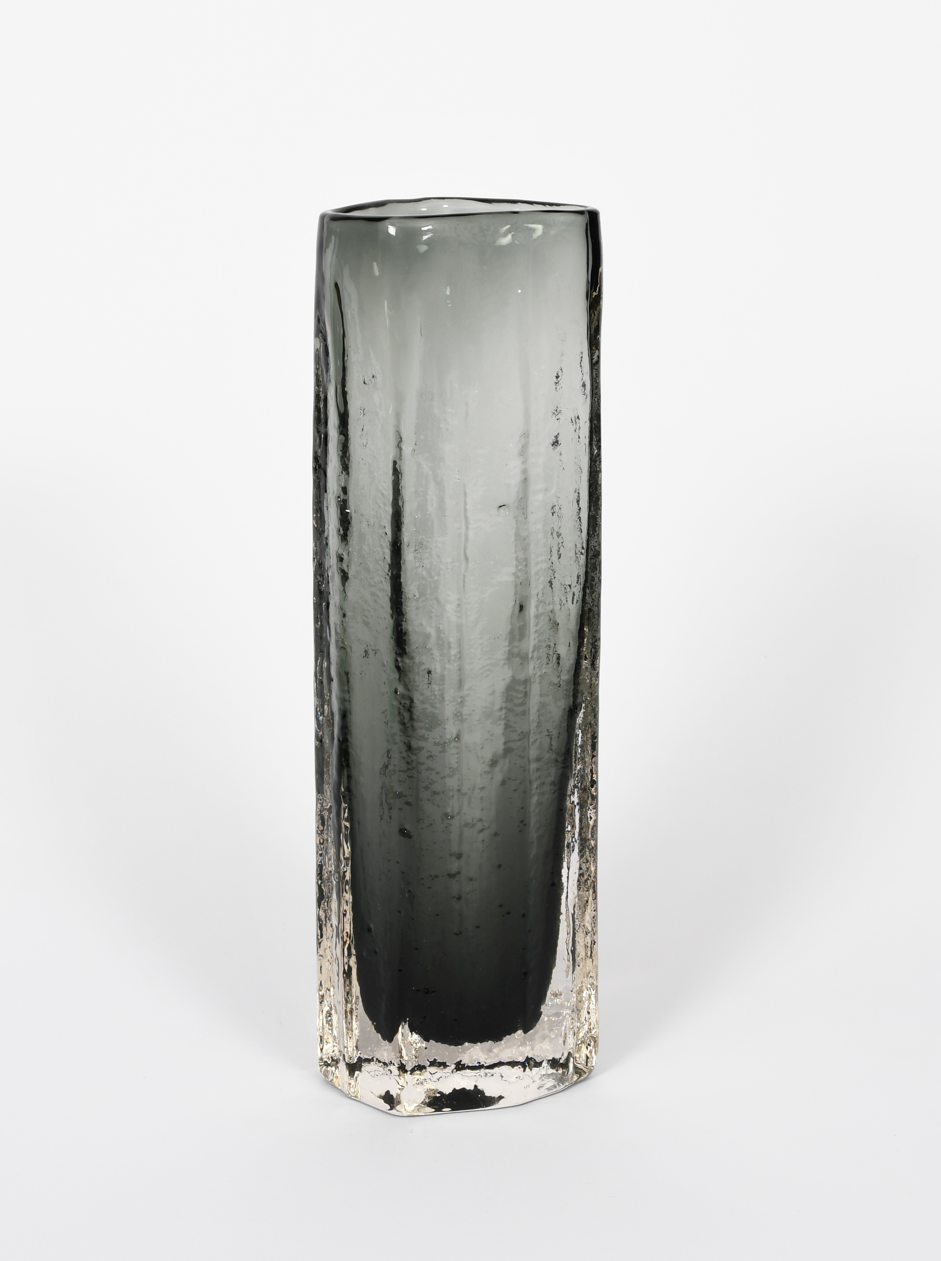 A Whitefriars Willow glass vase designed by Geoffrey Baxter, cylindrical form with textured finish, unsigned, 29.5cm. high