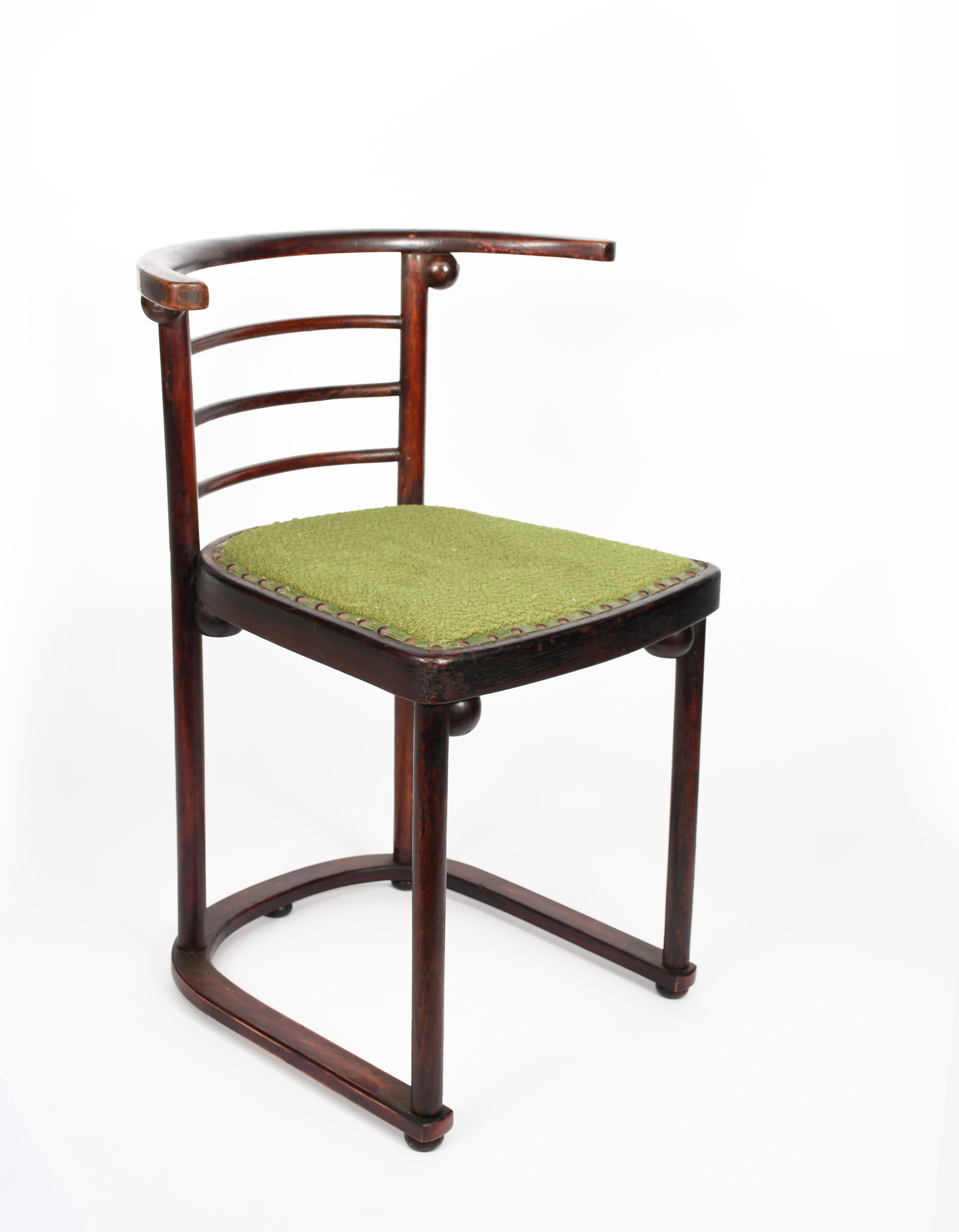 A J & J Kohn Fledermaus chair designed by Josef Hoffmann, stained bentwood with applied ball decoration on bun feet, stamped factory marks, 73.5cm. high