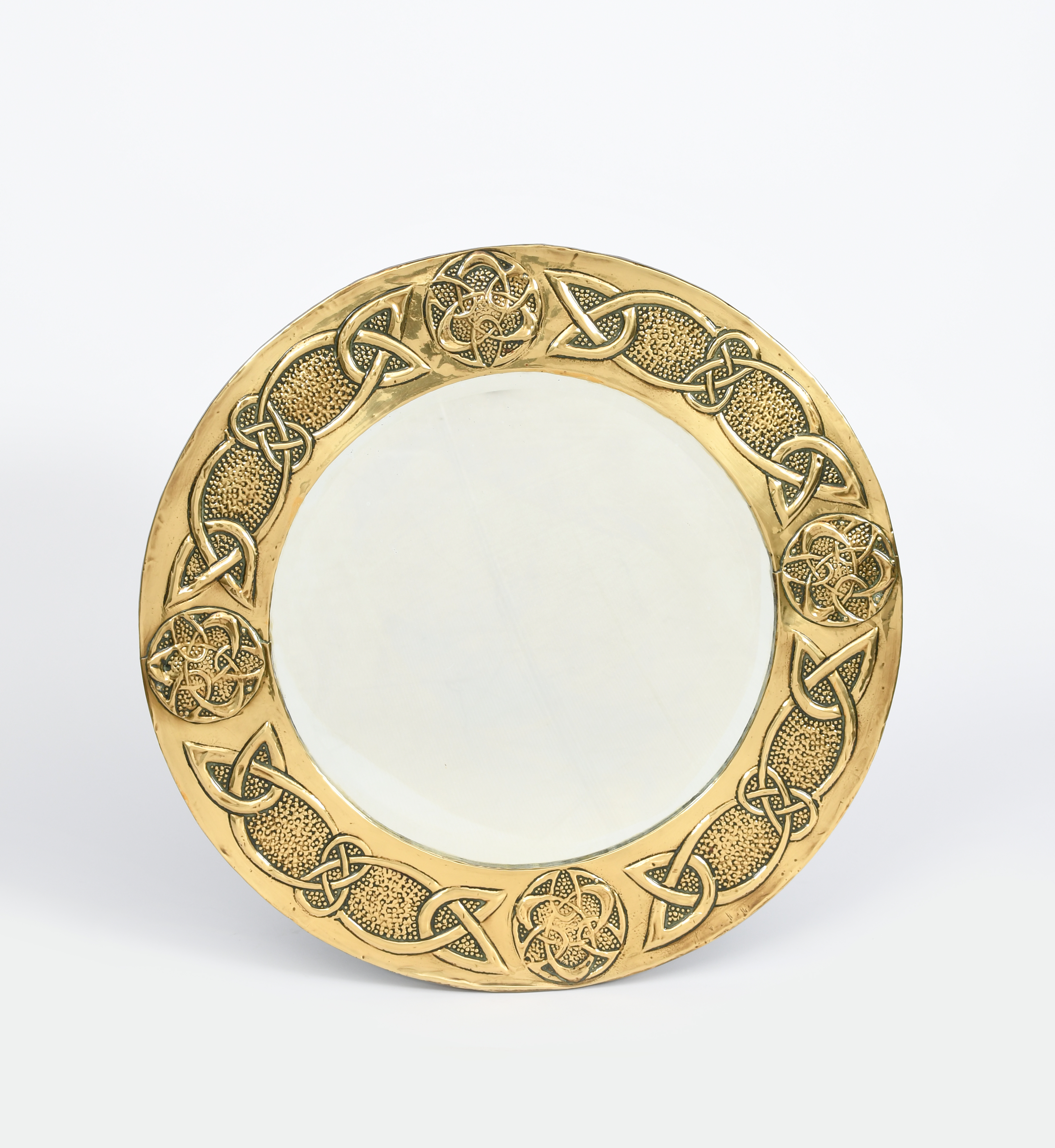 A 'Glasgow School' brass wall mirror in the manner of Margaret Gilmour