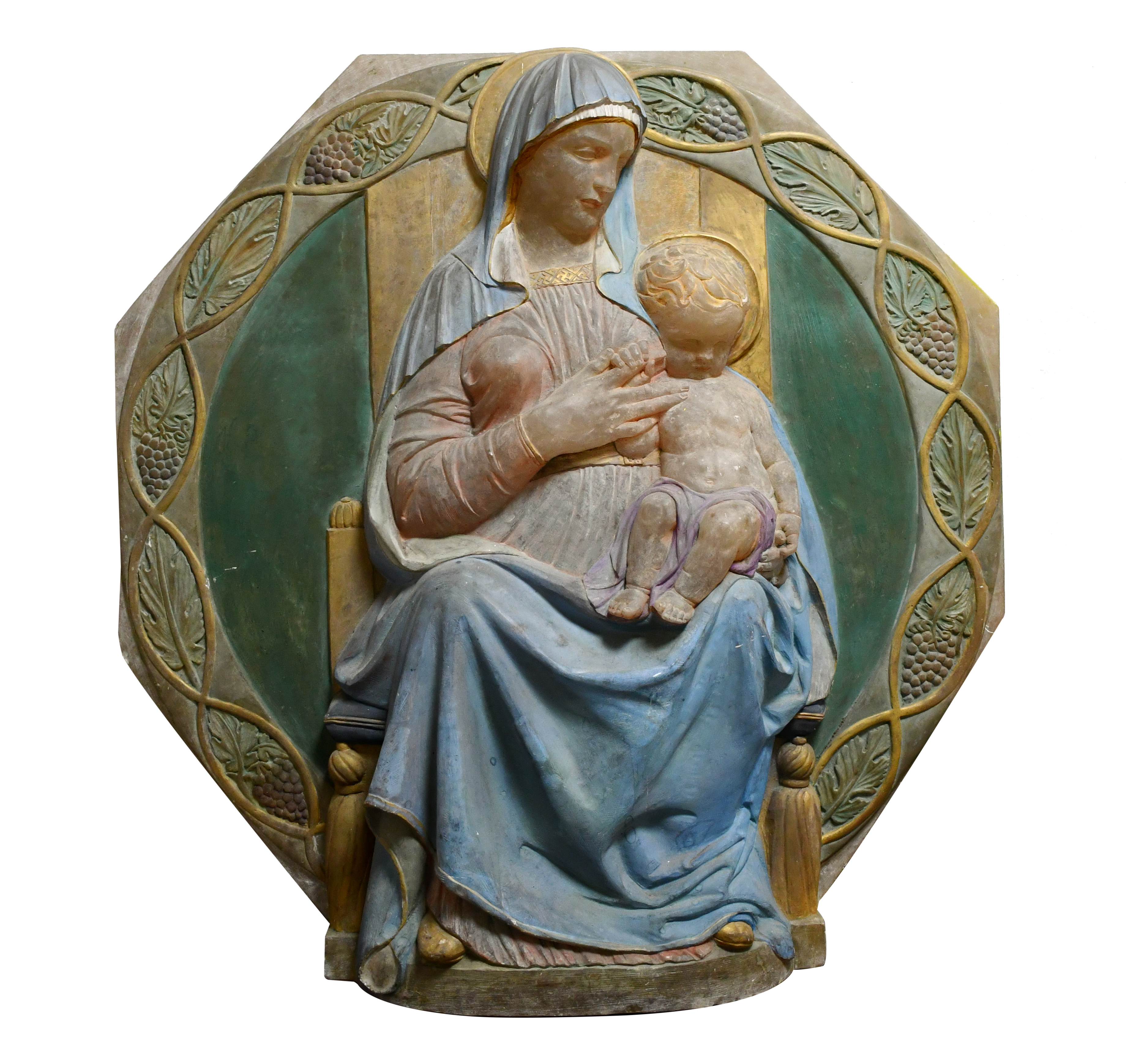 'Mother and Child' a large painted alabaster panel