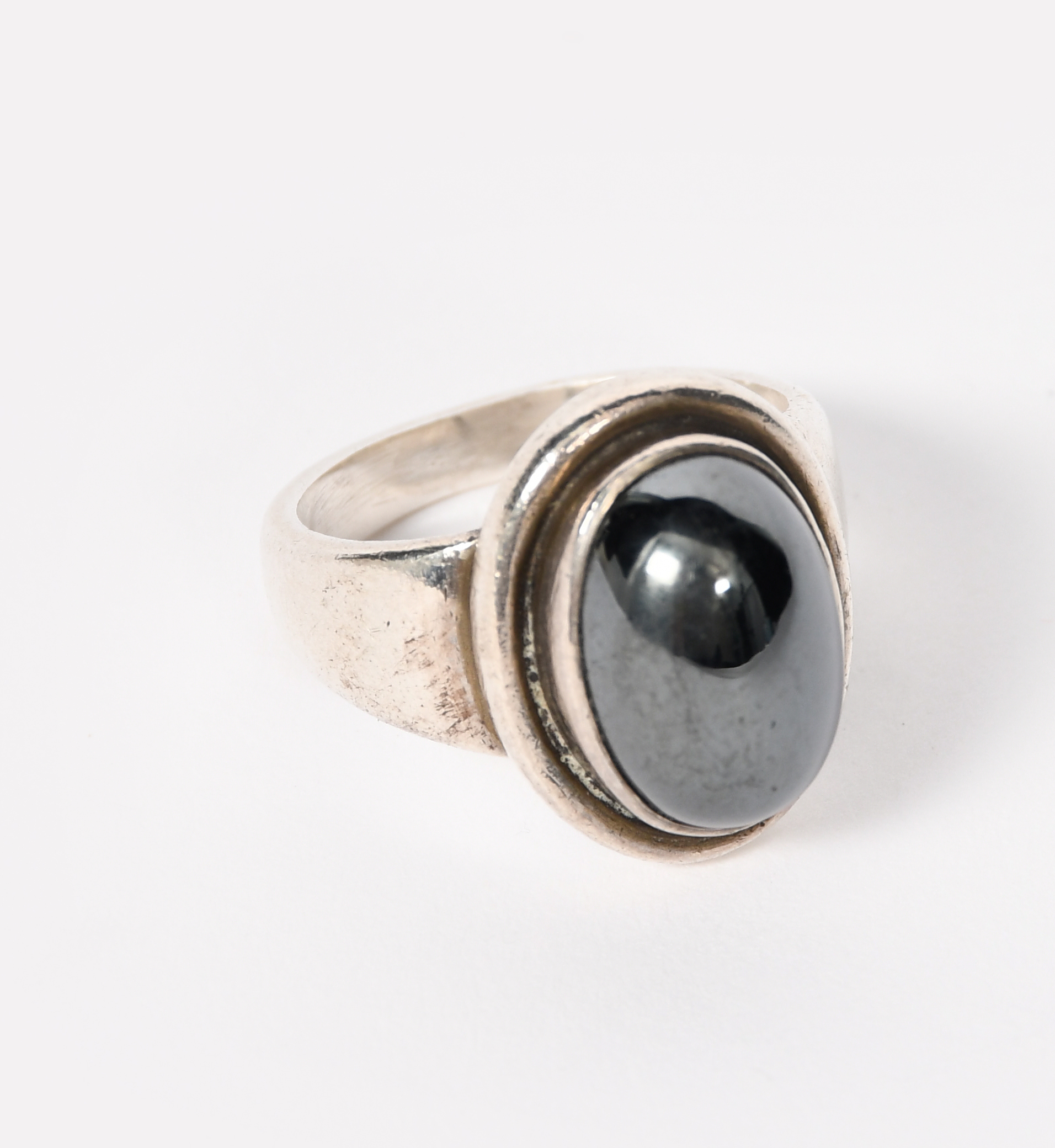 A Georg Jensen silver and hematite ring, model no.46B, set with hematite cabochon, stamped marks, size K
