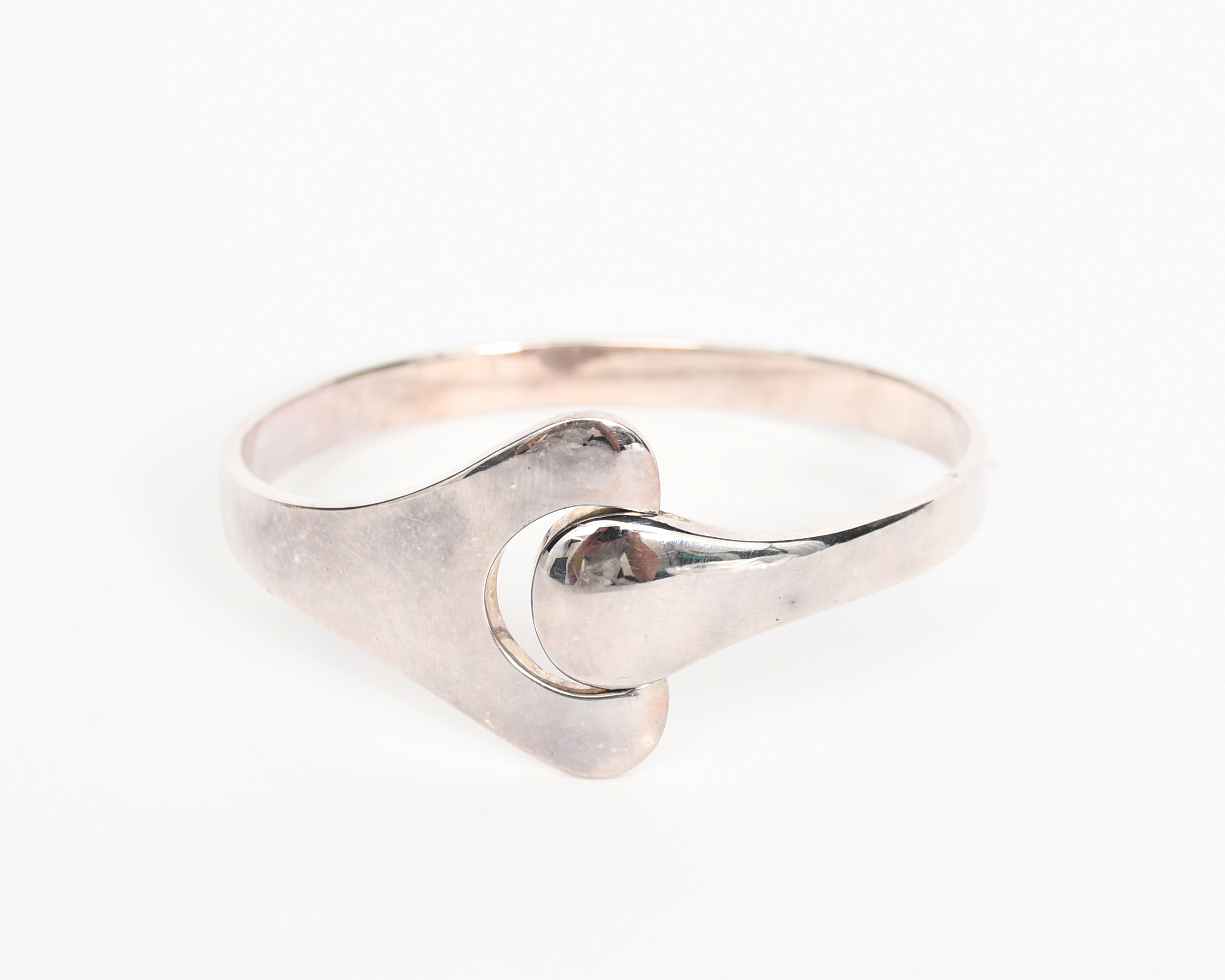 A Georg Jensen silver bangle, stamped marks, 6.5cm. wide