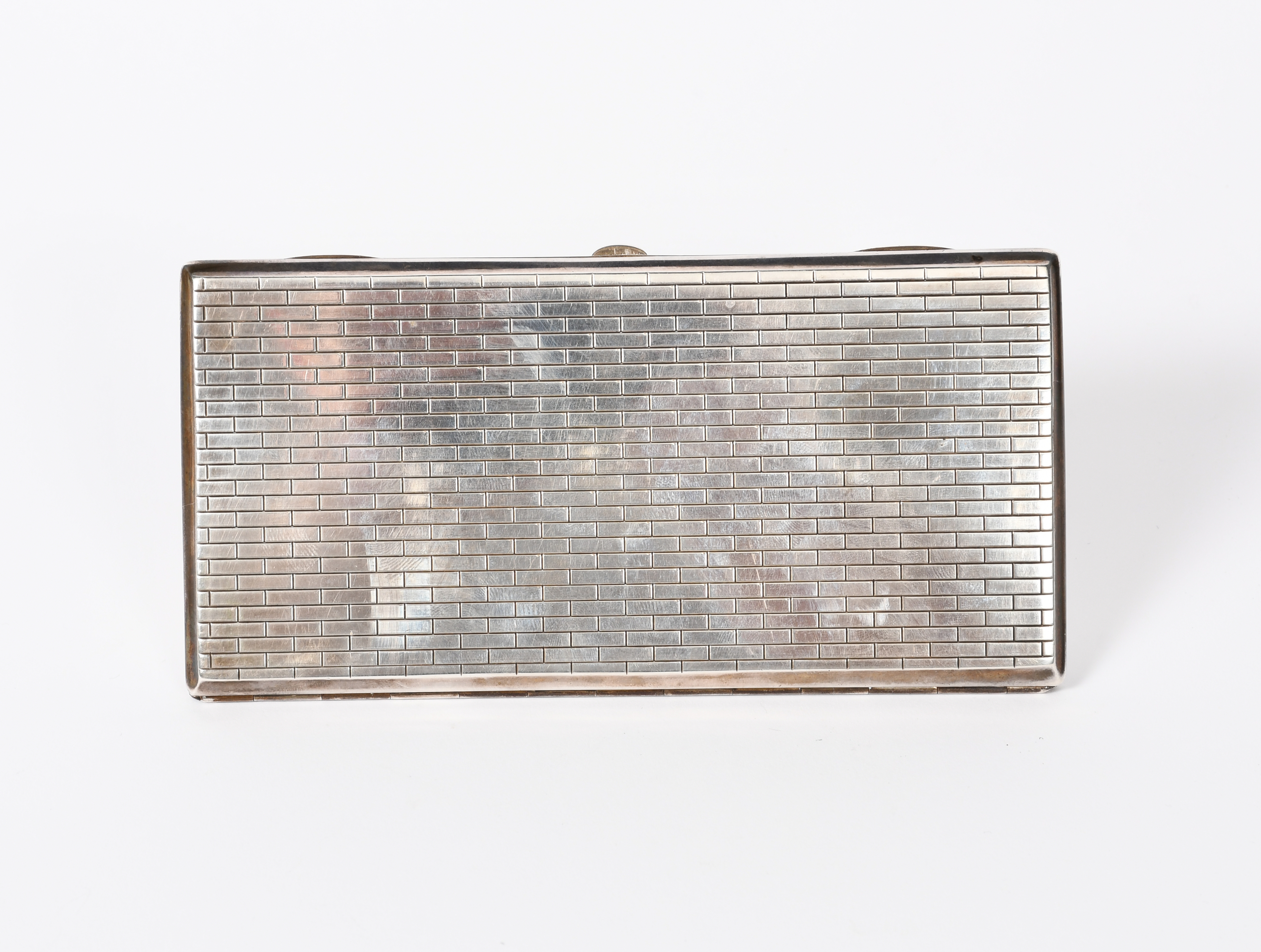 An Omar Ramsden silver cigarette case, rectangular, the case with simple geometric decoration, etched Omar Ramsden me fecit, stamped London 1939, 17cm., (8.2oz)