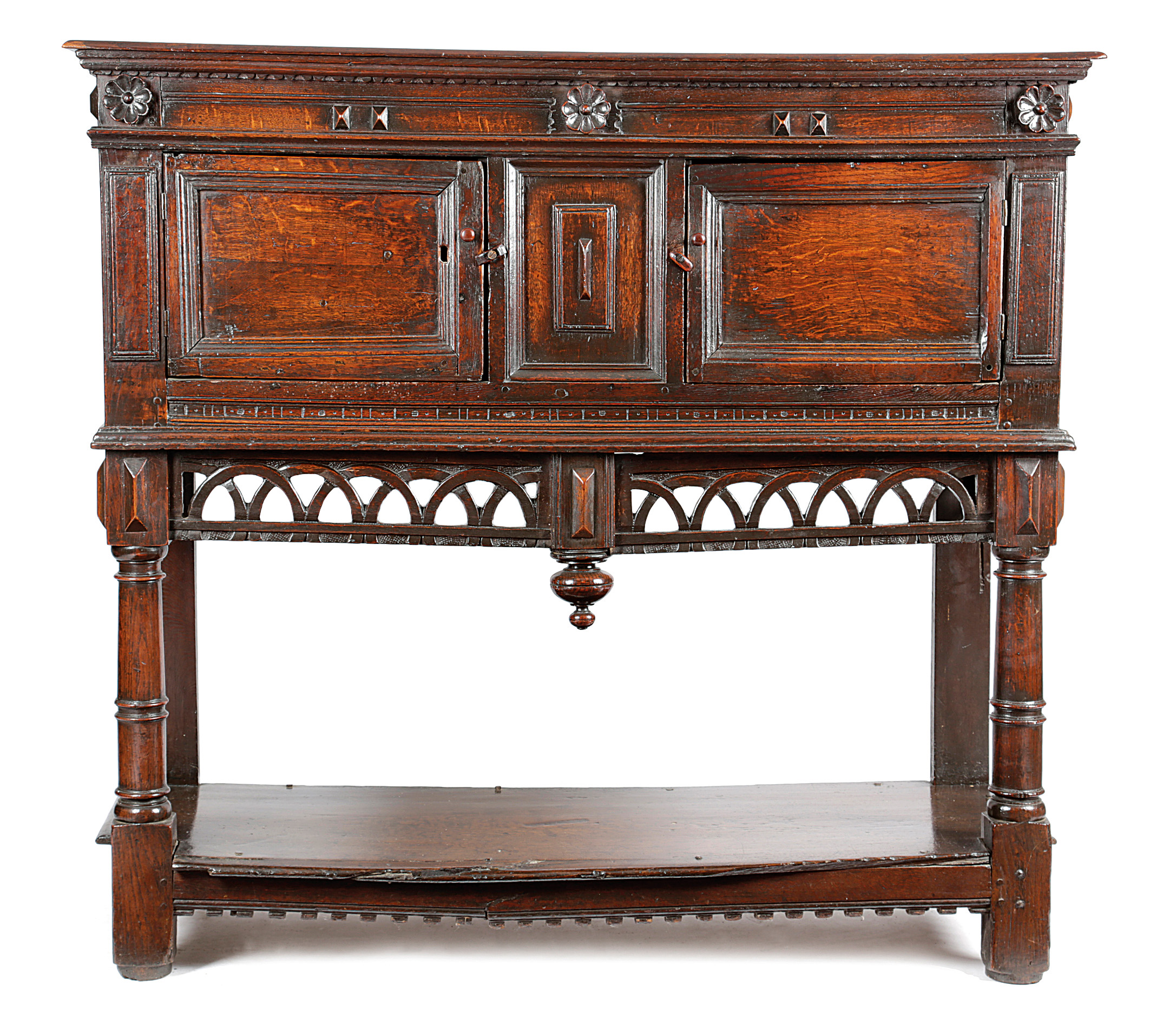 A RARE DOCUMENTED CHARLES I OAK LIVERY CUPBOARD