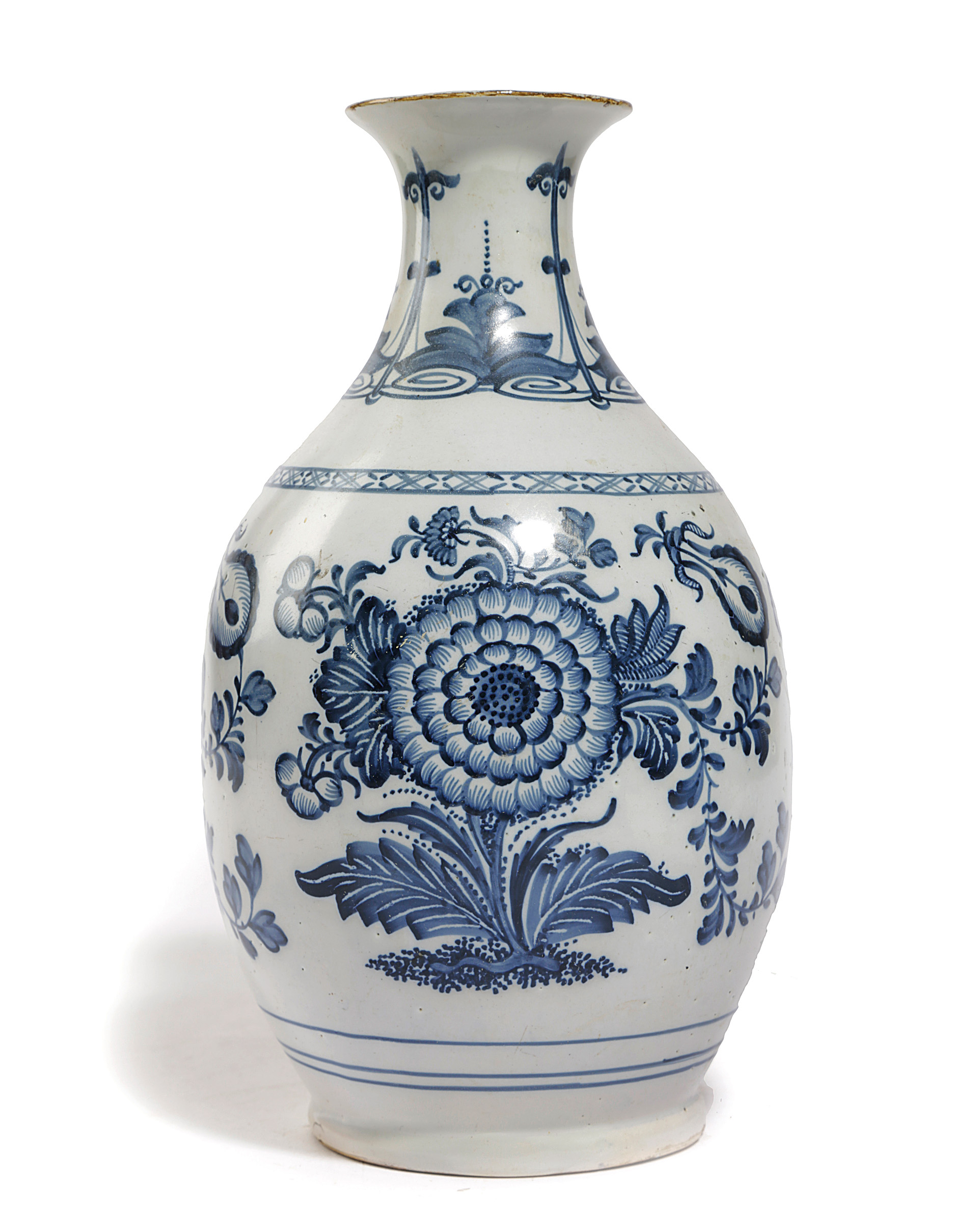 of pear shape, with an everted rim, painted in Chinese style with three different flowers