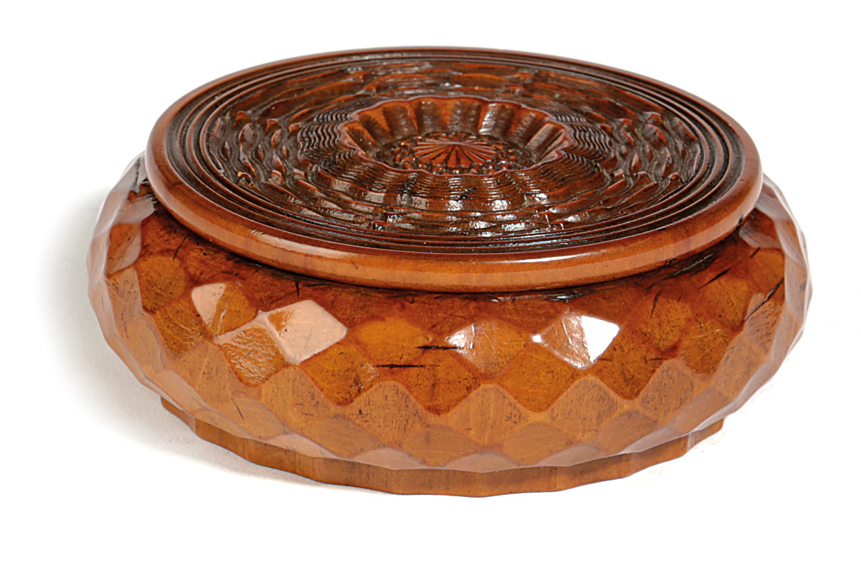 A CHARLES II TREEN BOXWOOD ROSE ENGINE TURNED BOX AND COVER