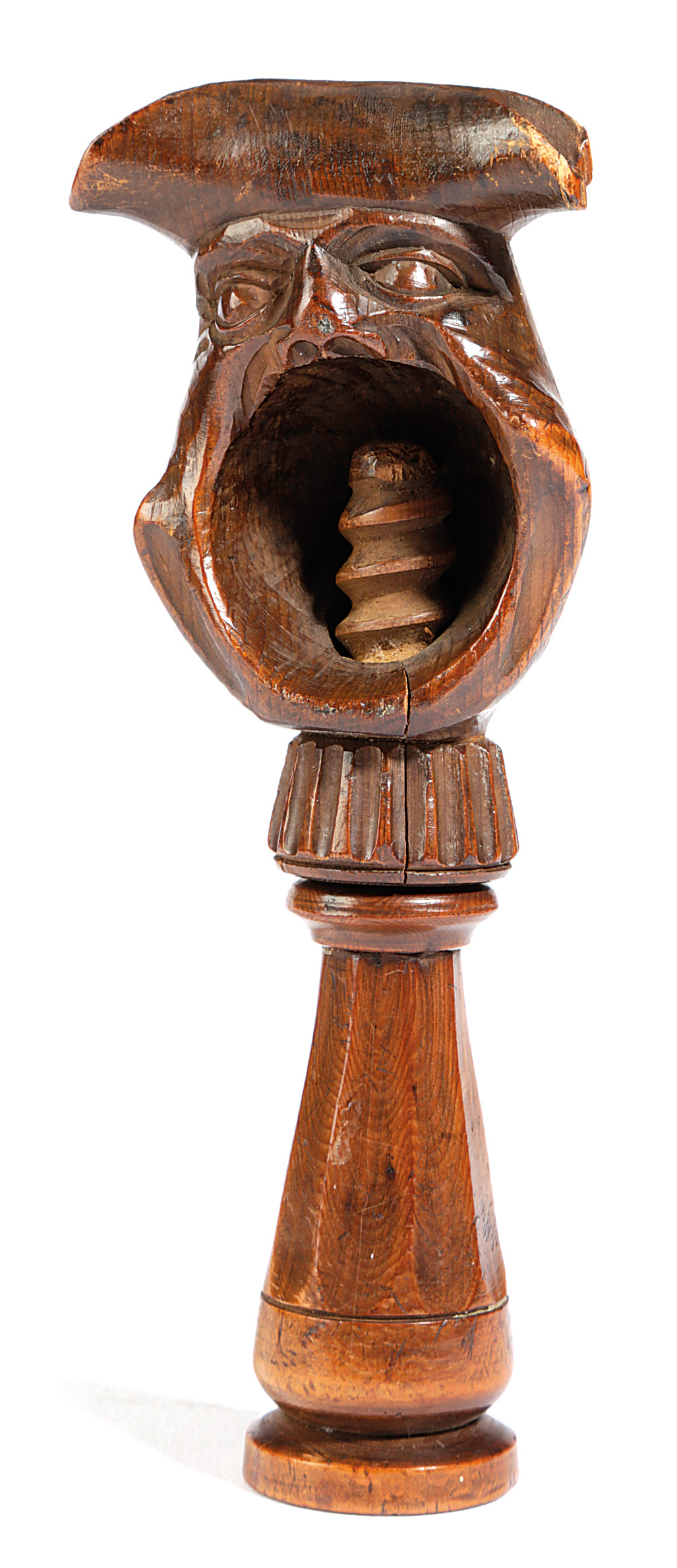 carved as a bust of a man wearing a tricorn hat, the other side with his mouth wide open, with a screw action
