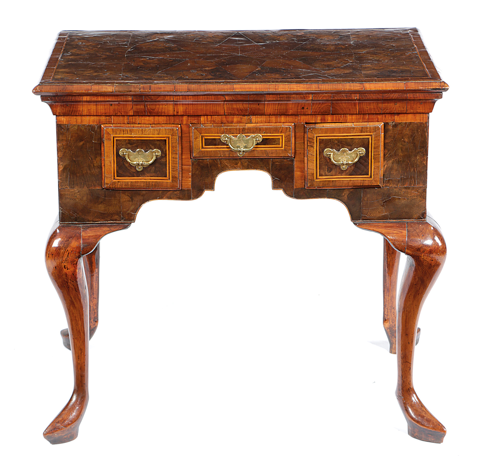 A RARE GEORGE II YEW AND WALNUT LOWBOY