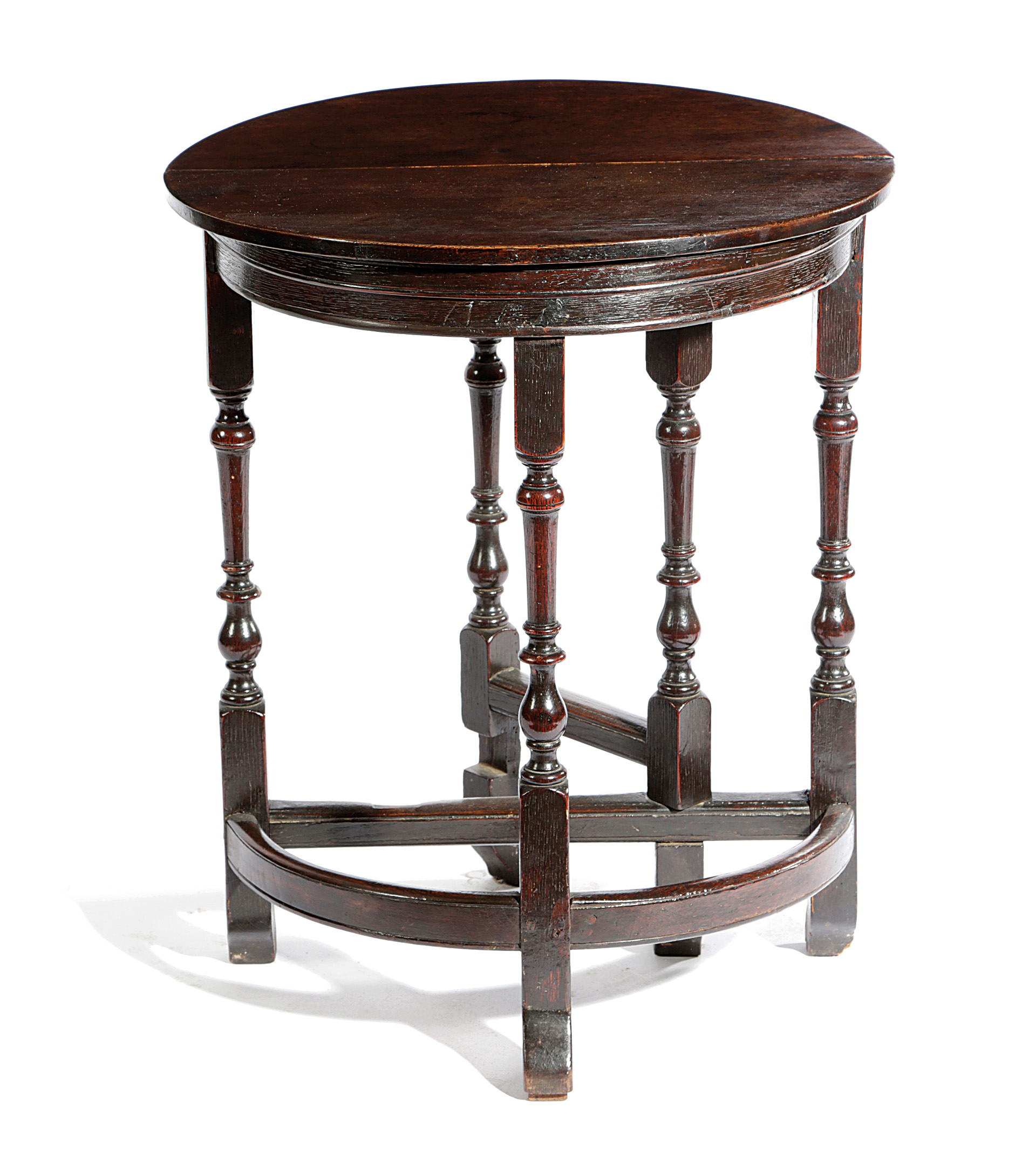 A RARE QUEEN ANNE OAK DEMI-LUNE SIDE TABLE