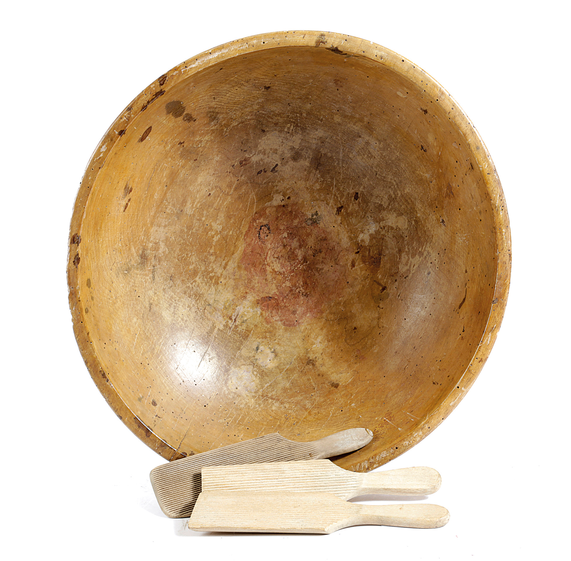 A LARGE TREEN SYCAMORE DAIRY BOWL