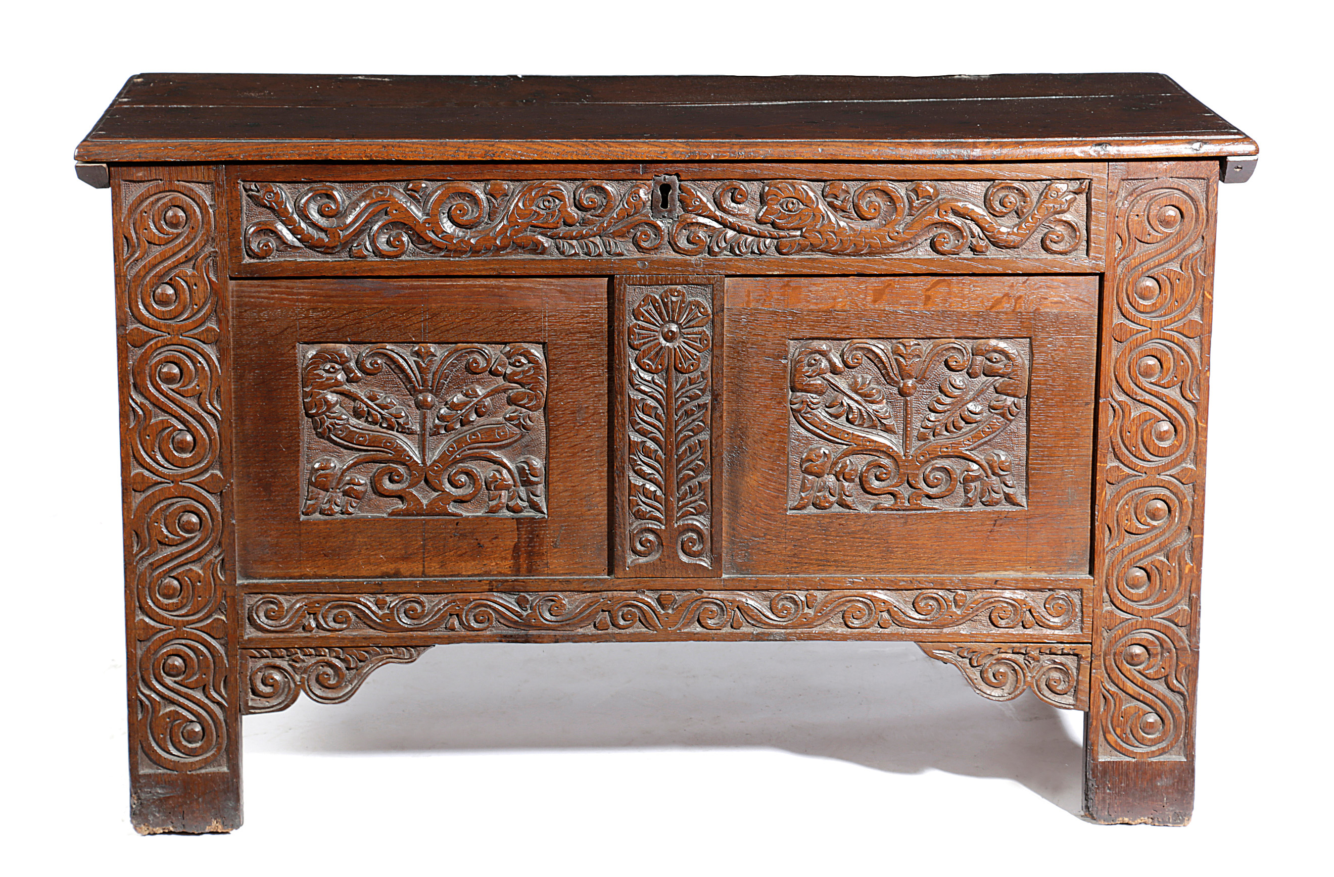 A CHARLES II OAK COFFER
