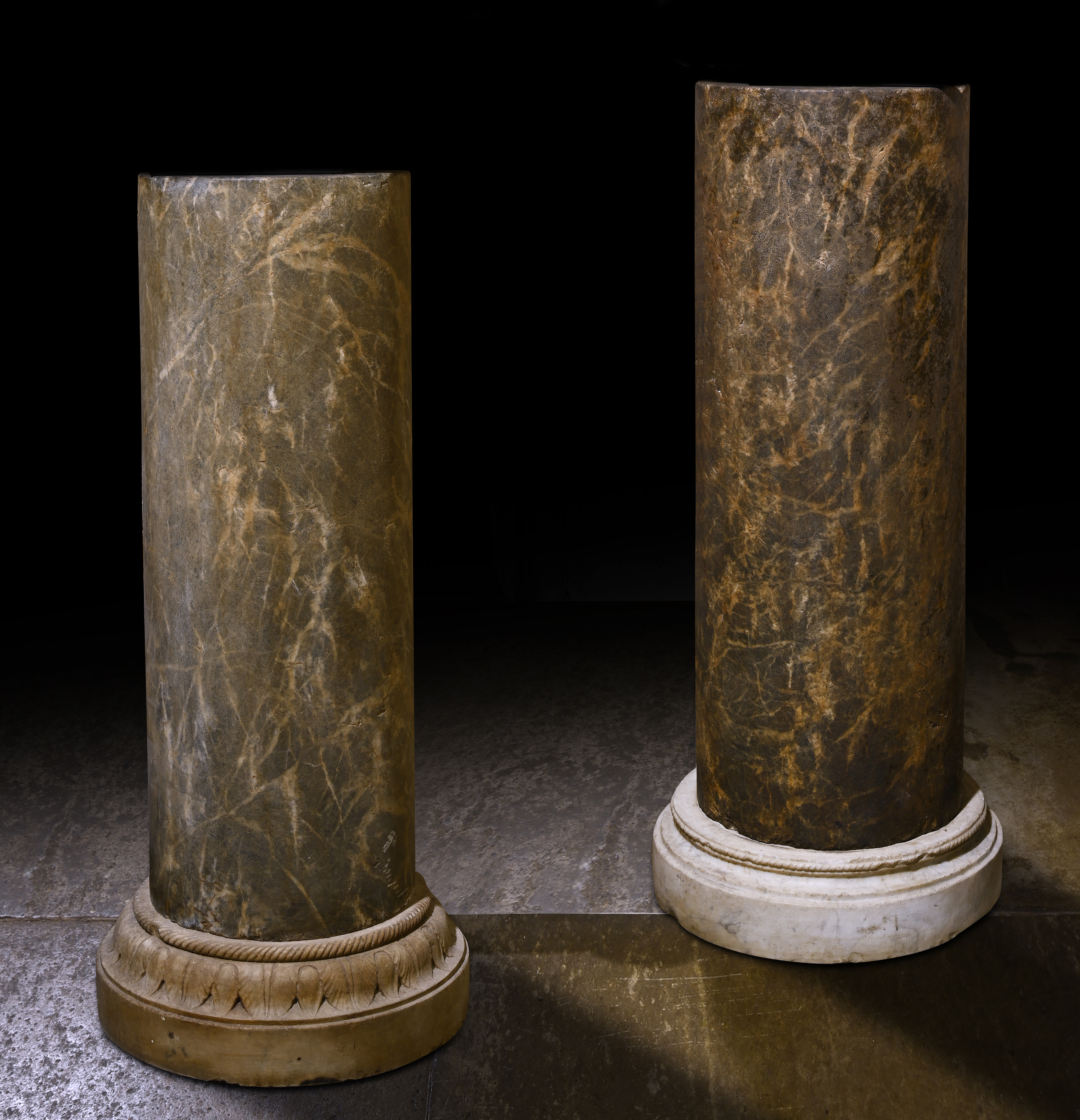 A PAIR OF ITALIAN MOTTLED MARBLE COLUMNS