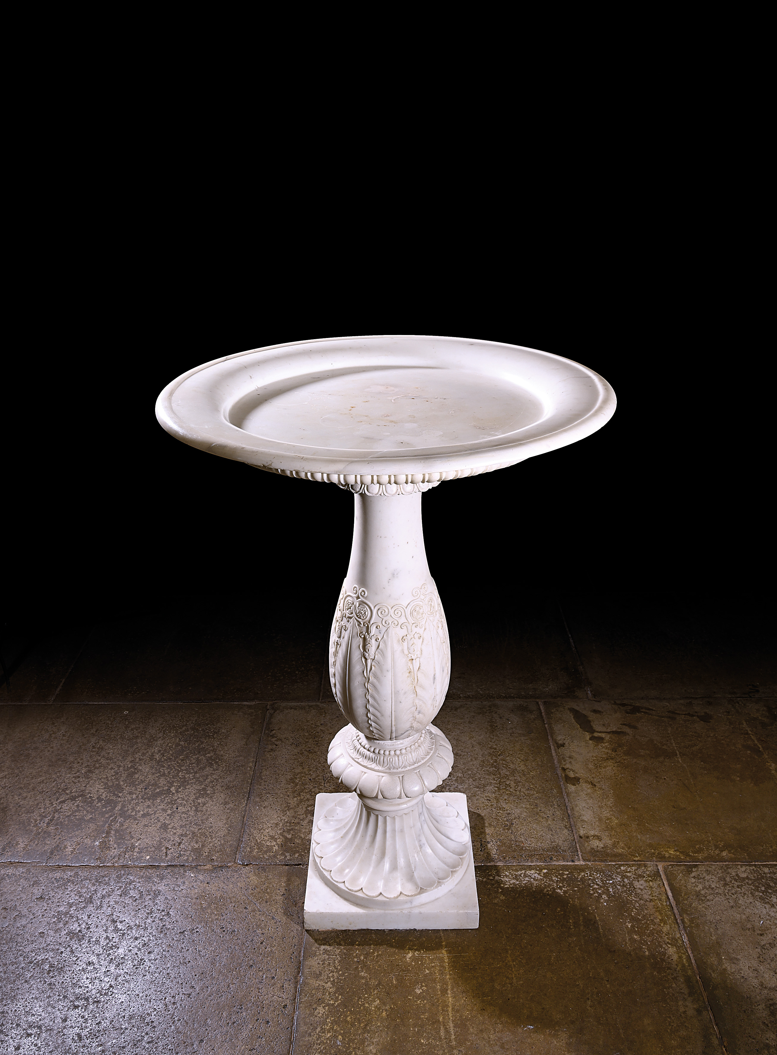 AN ITALIAN WHITE MARBLE FONT OR BIRD BATH