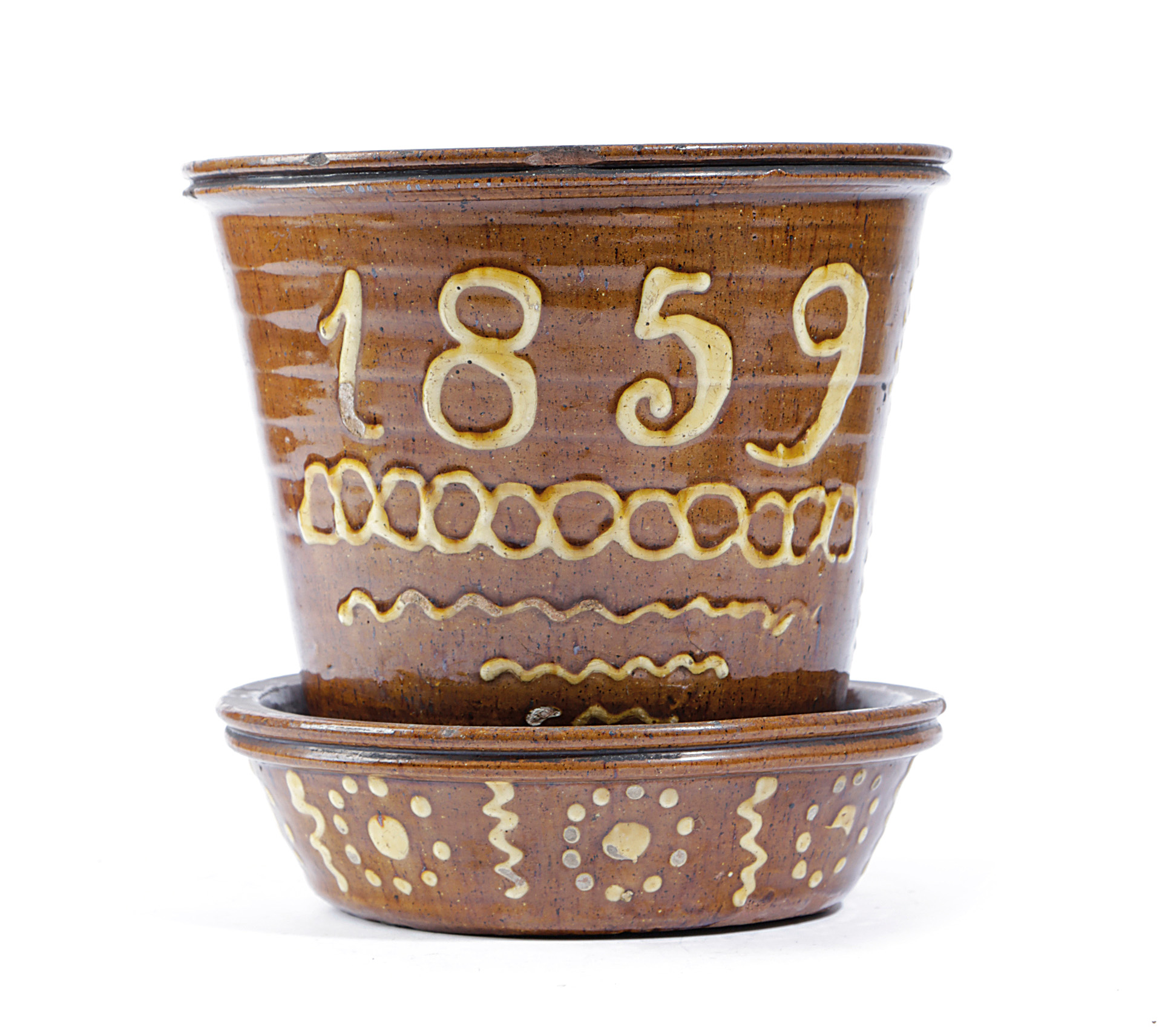AN EARLY VICTORIAN STAFFORDSHIRE SLIPWARE POTTERY PLANT POT