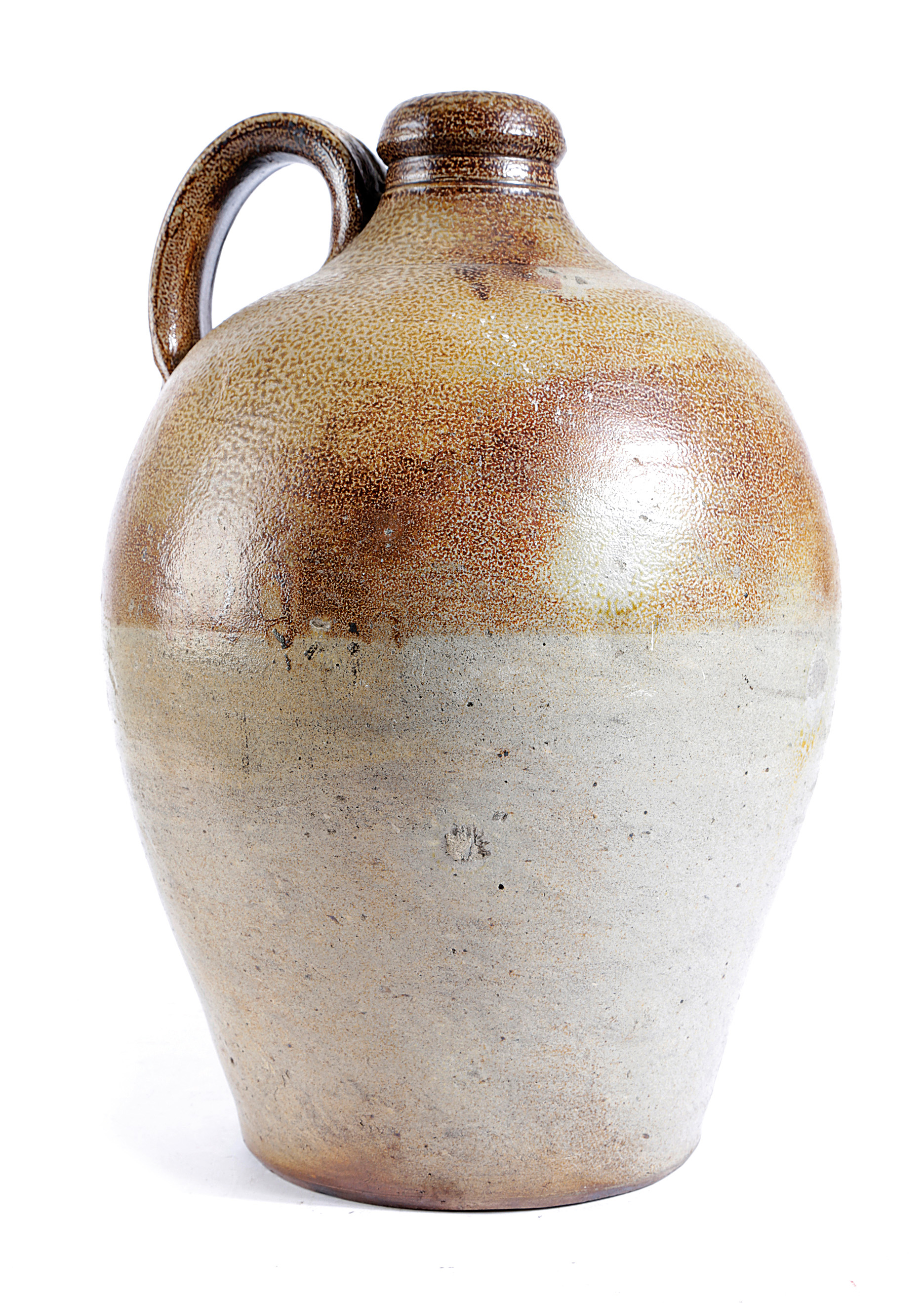 A LARGE BROWN STONEWARE BOTTLE OR FLAGON