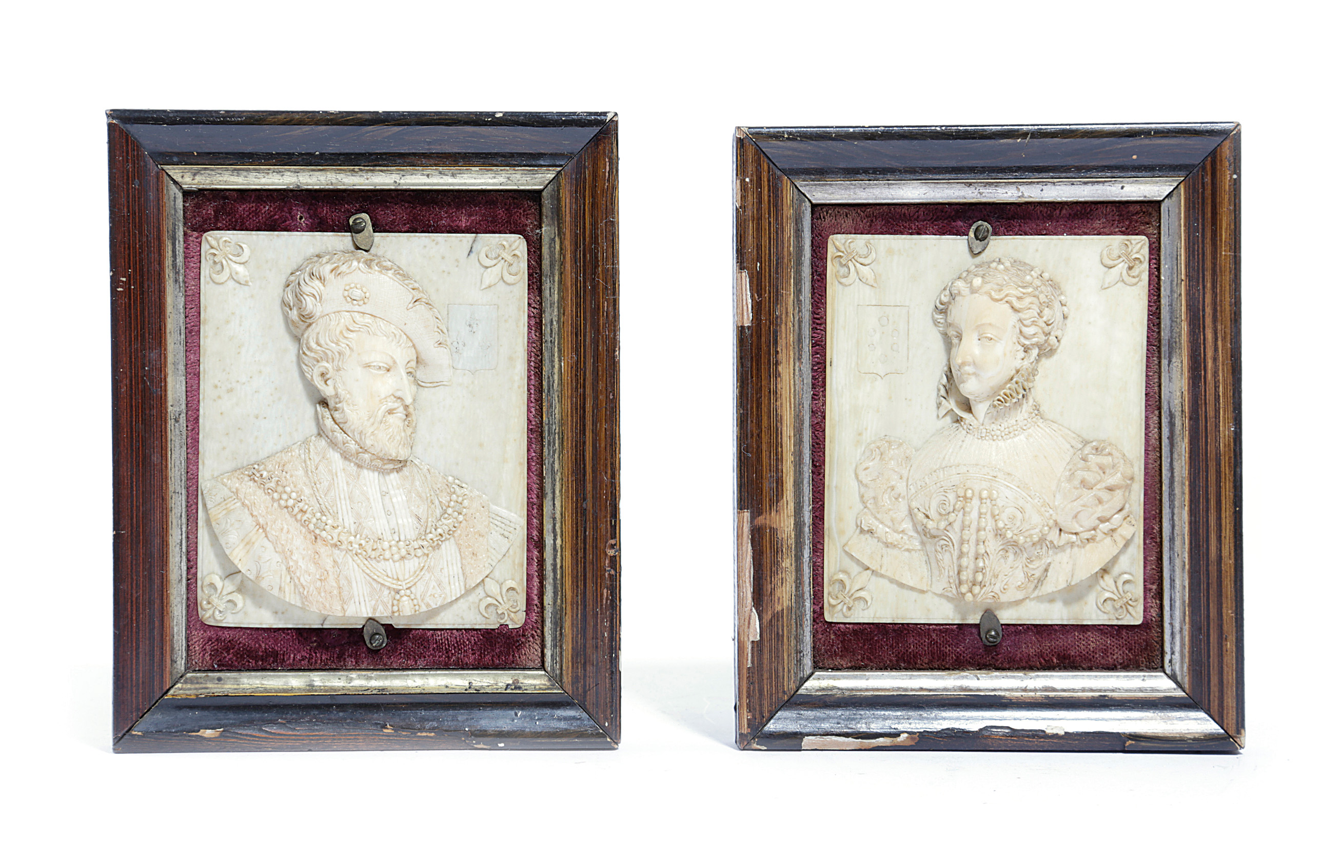 λ A PAIR OF FRENCH IVORY PORTRAIT RELIEF PLAQUES