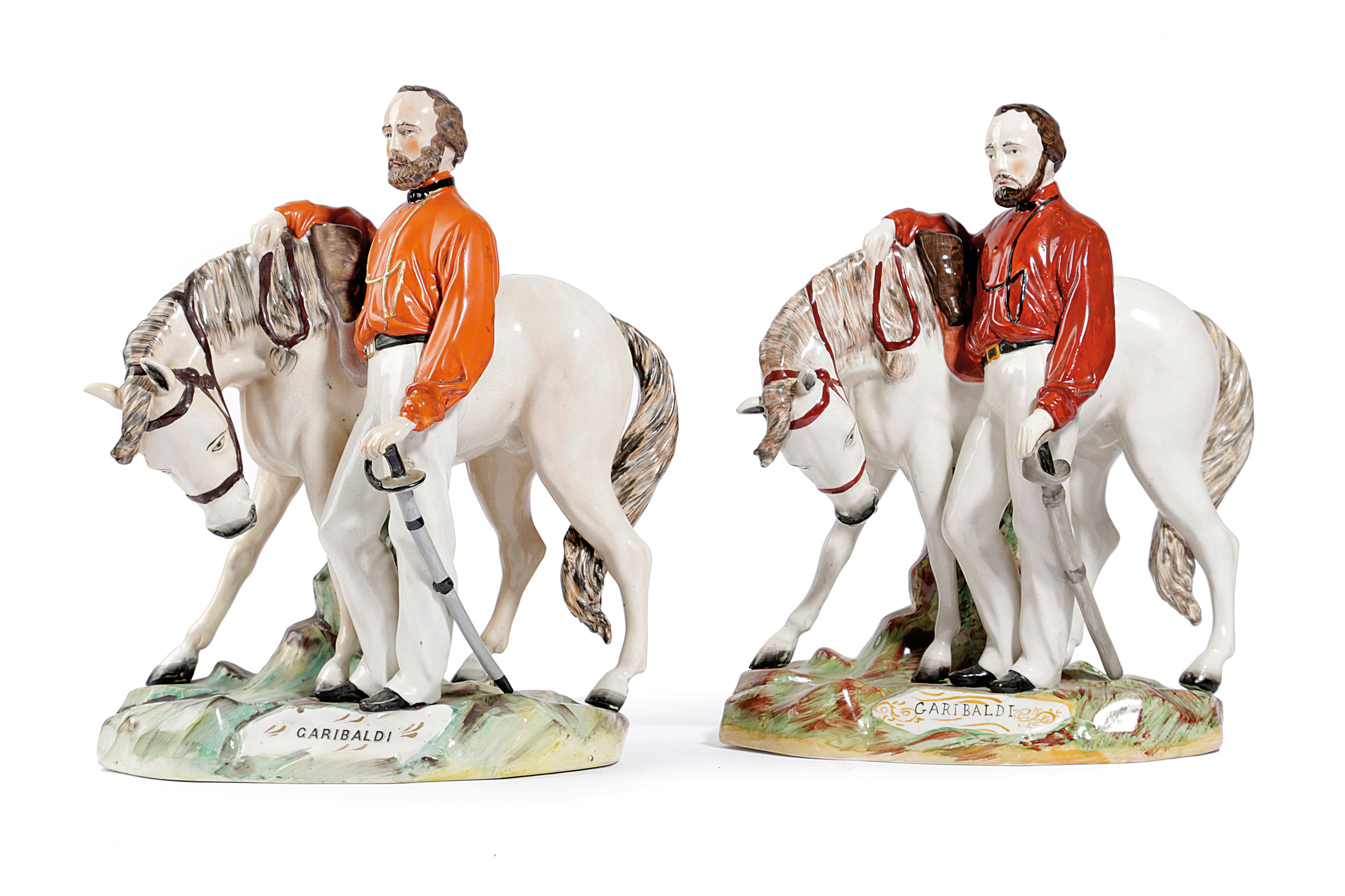 TWO LARGE STAFFORDSHIRE POTTERY FIGURES OF GIUSEPPE GARIBALDI