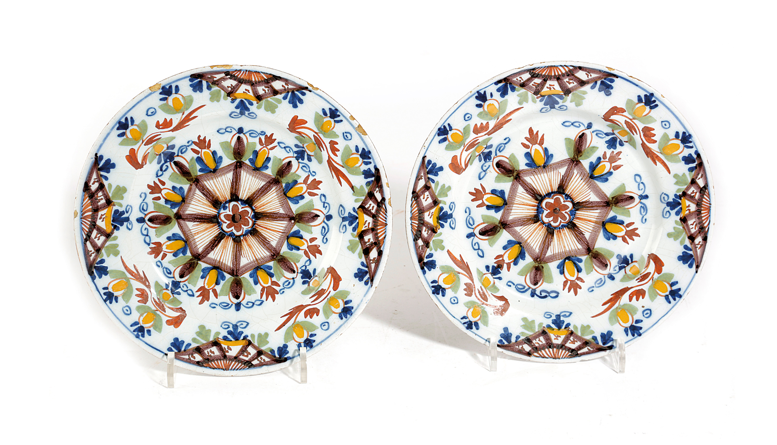 A PAIR OF DELFTWARE POTTERY PLATES