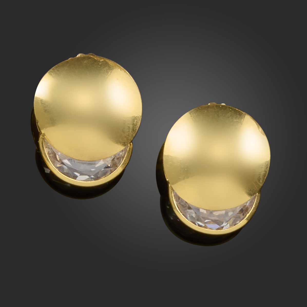 A pair of gold earrings by Gucci, set with demi-lune-shaped white stones in circular gold mounts, maker's mark, Italian marks, post fittings, 2.2cm high