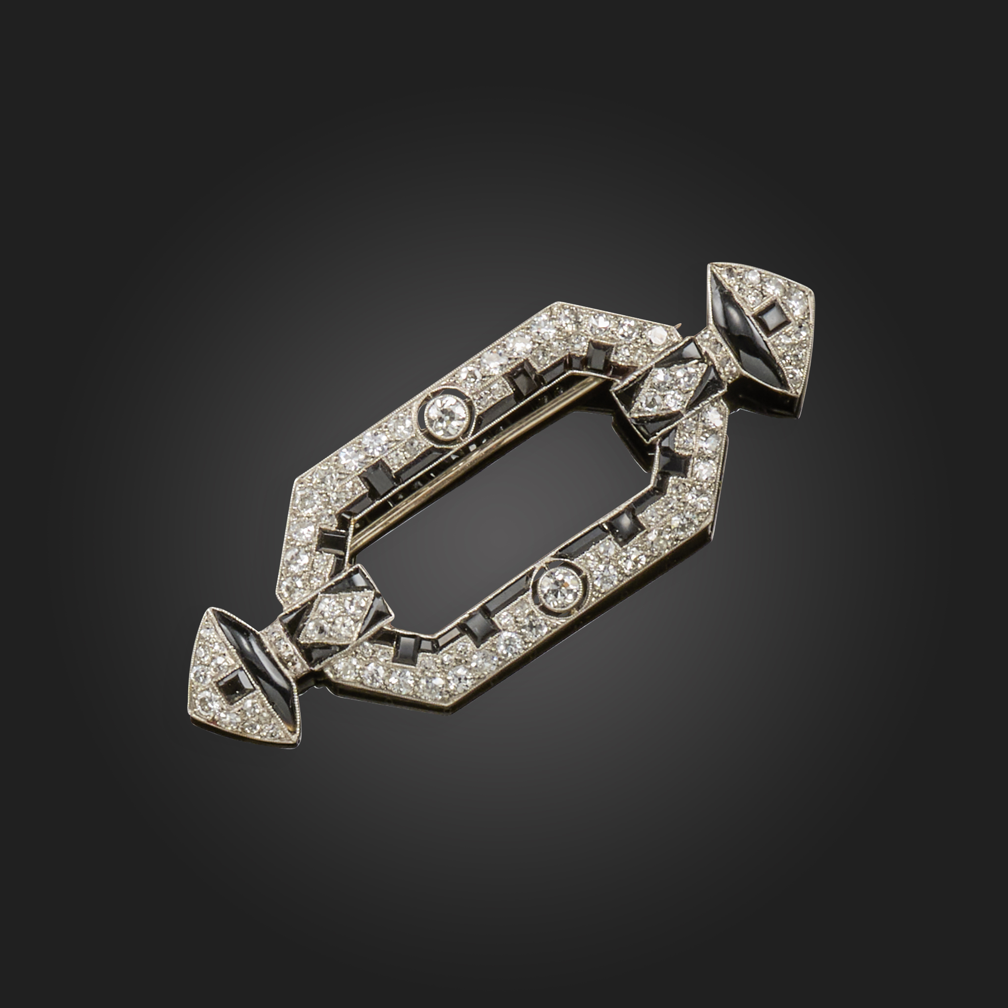 An Art Deco onyx and diamond brooch