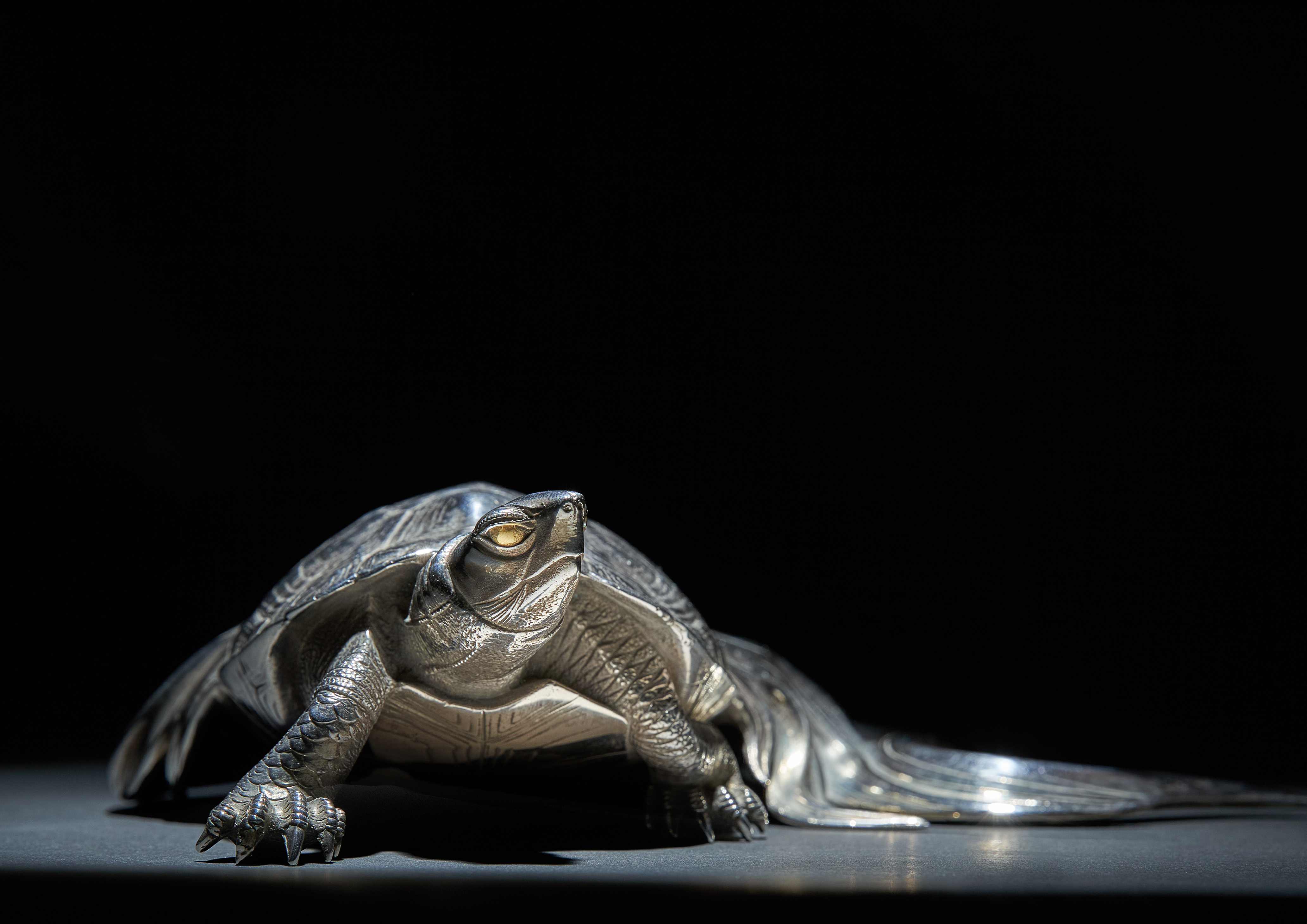 See L Bordignon, The Golden Age of Japanese Okimono, pp.243-4 for another example of a silver minogame signed Ryuki.