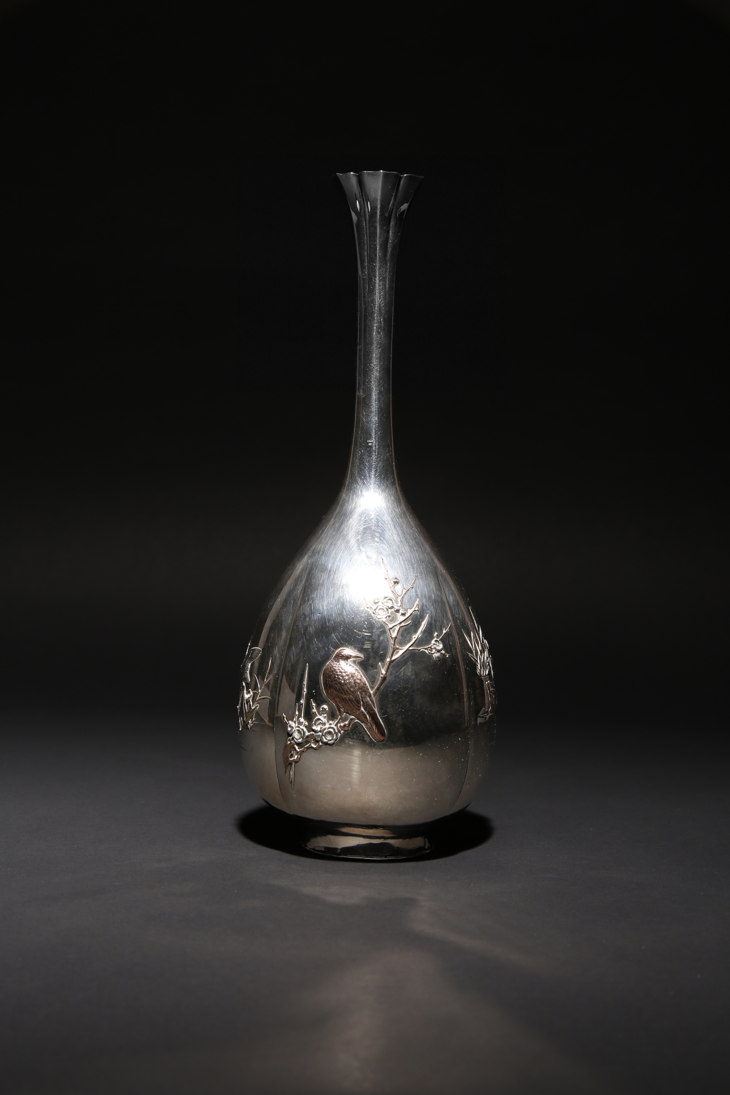 A TALL JAPANESE SILVER VASE BY HASEGAWA ISSEI