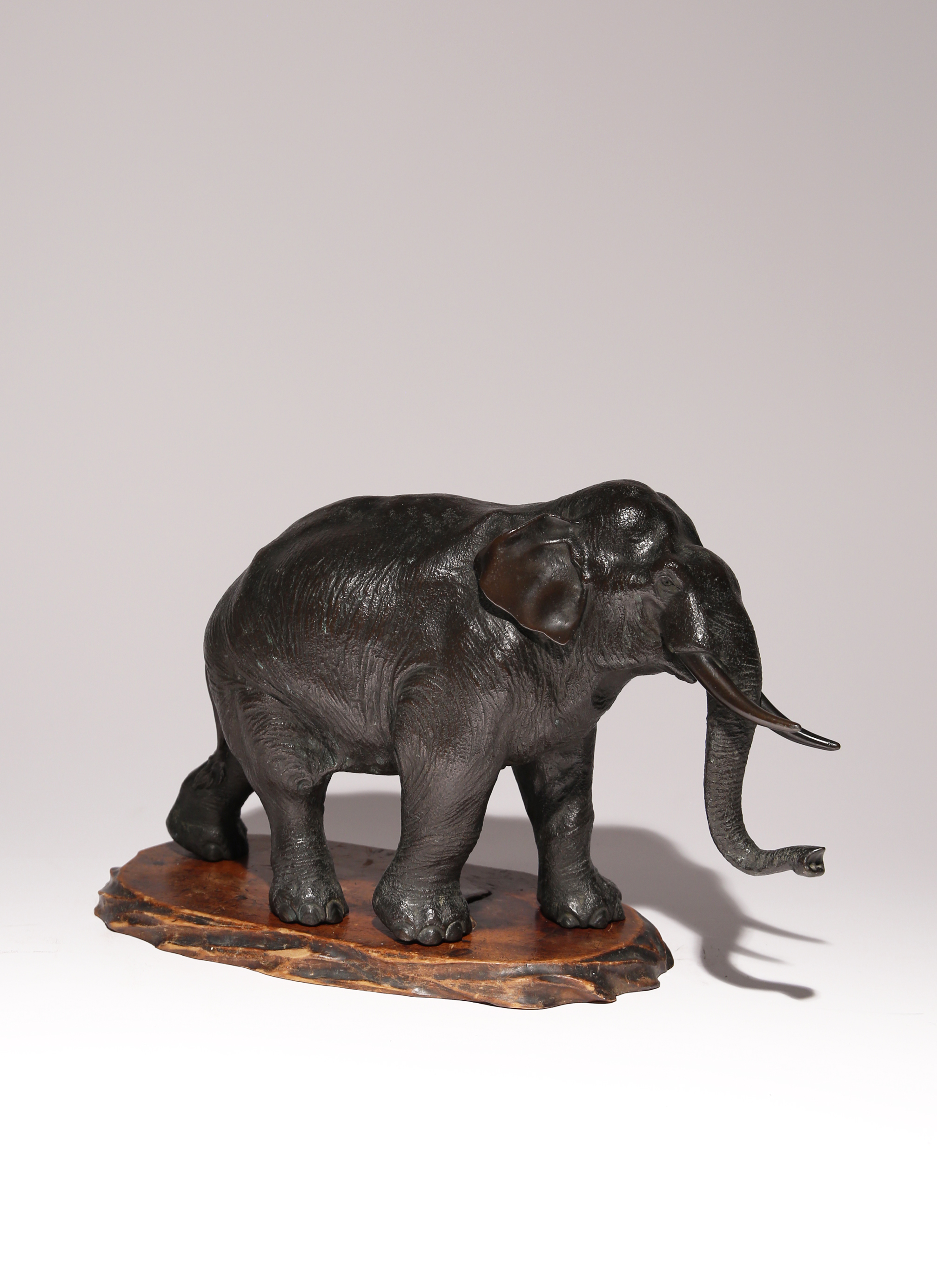 A JAPANESE BRONZE OKIMONO OF AN ELEPHANT