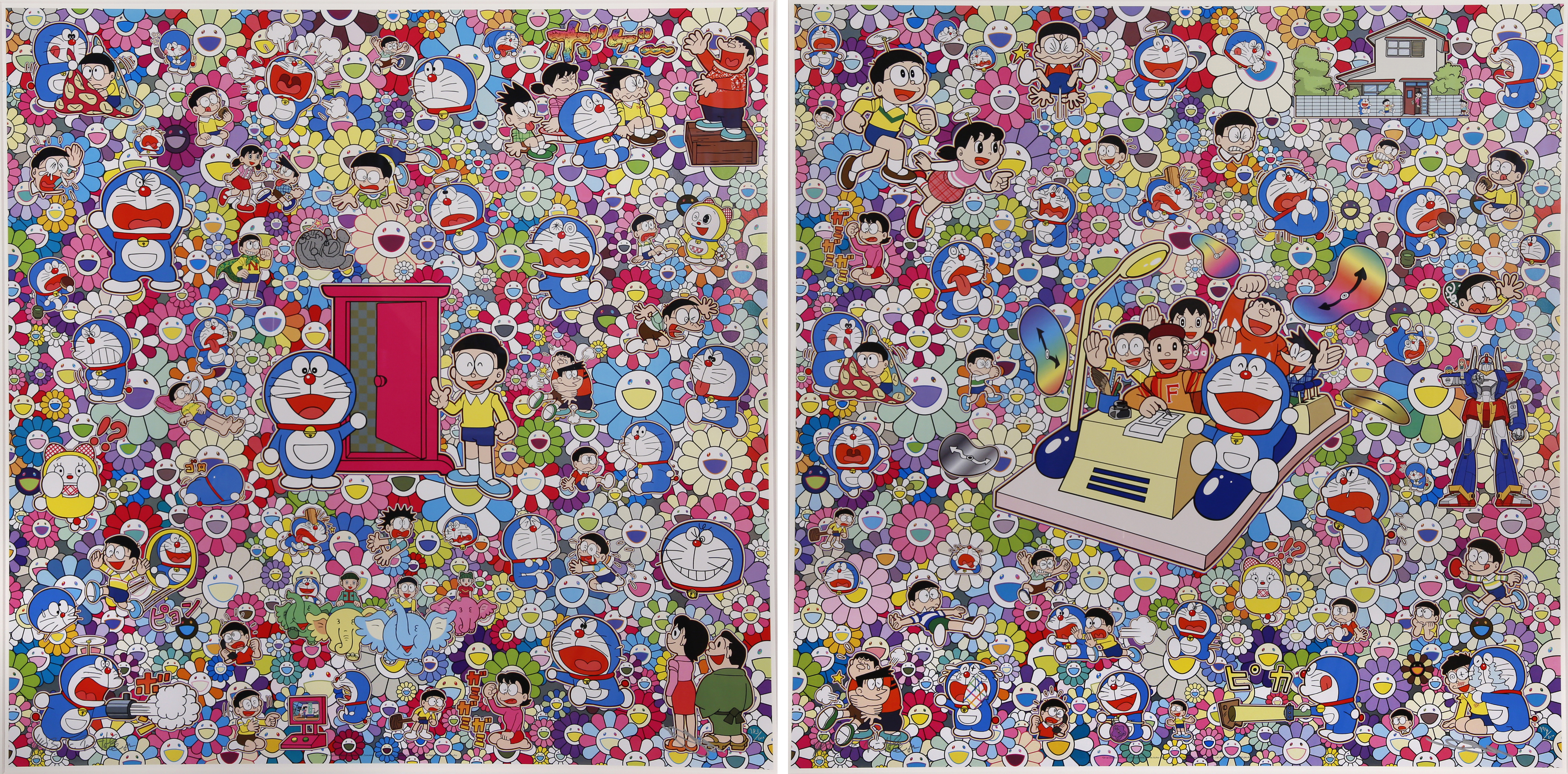 ', both depicting Doraemon and his friends amongst a multitude of flowers, one numbered 783/1000 and the other 794/1000, published by Kaikai Kiki Co., Ltd., Tokyo, signed Murakami in silver ink, framed and glazed, both approx. 71.5cm x 71.5cm. (2)