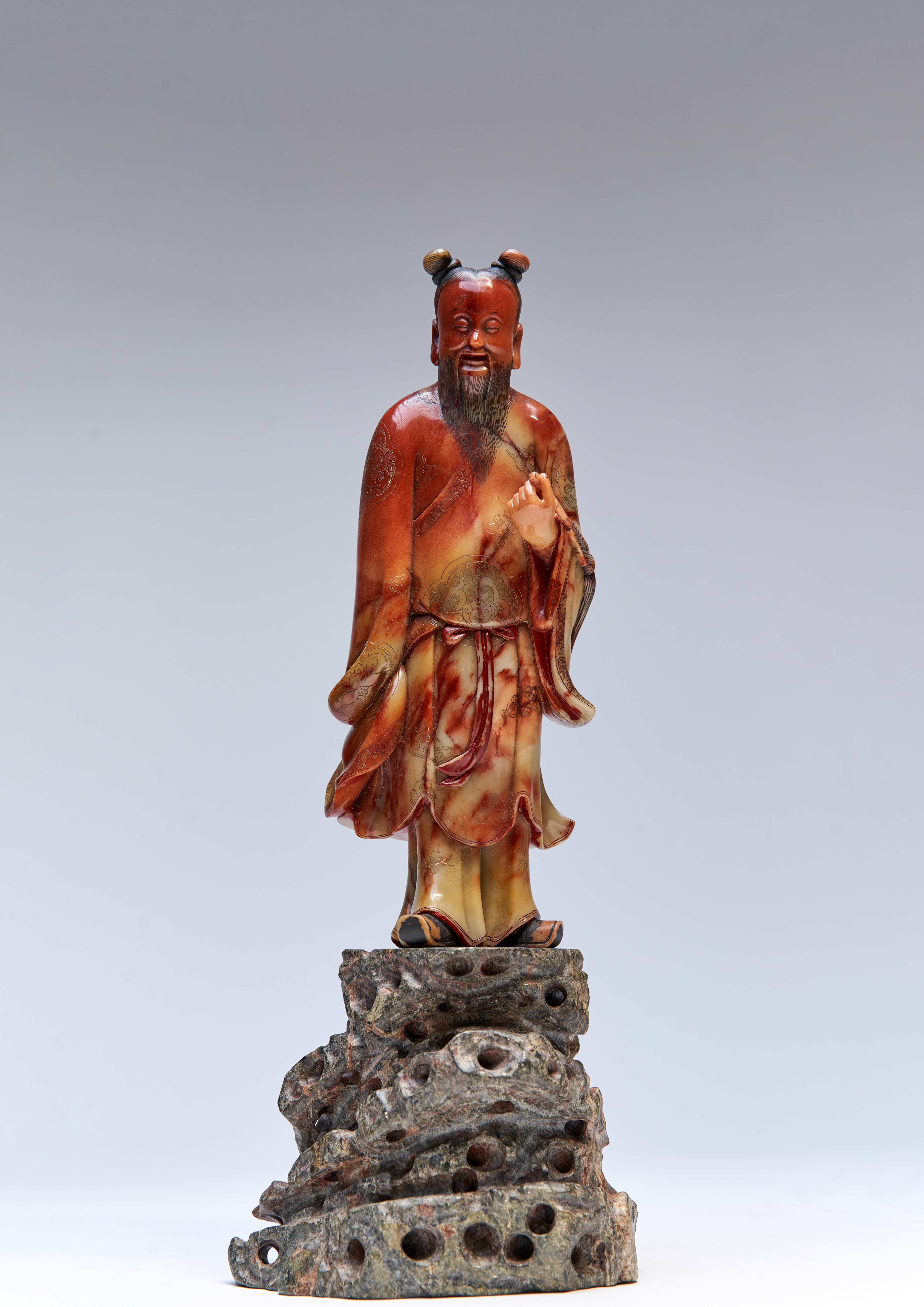 A CHINESE SOAPSTONE FIGURE OF THE IMMORTAL HAN ZHONGLI