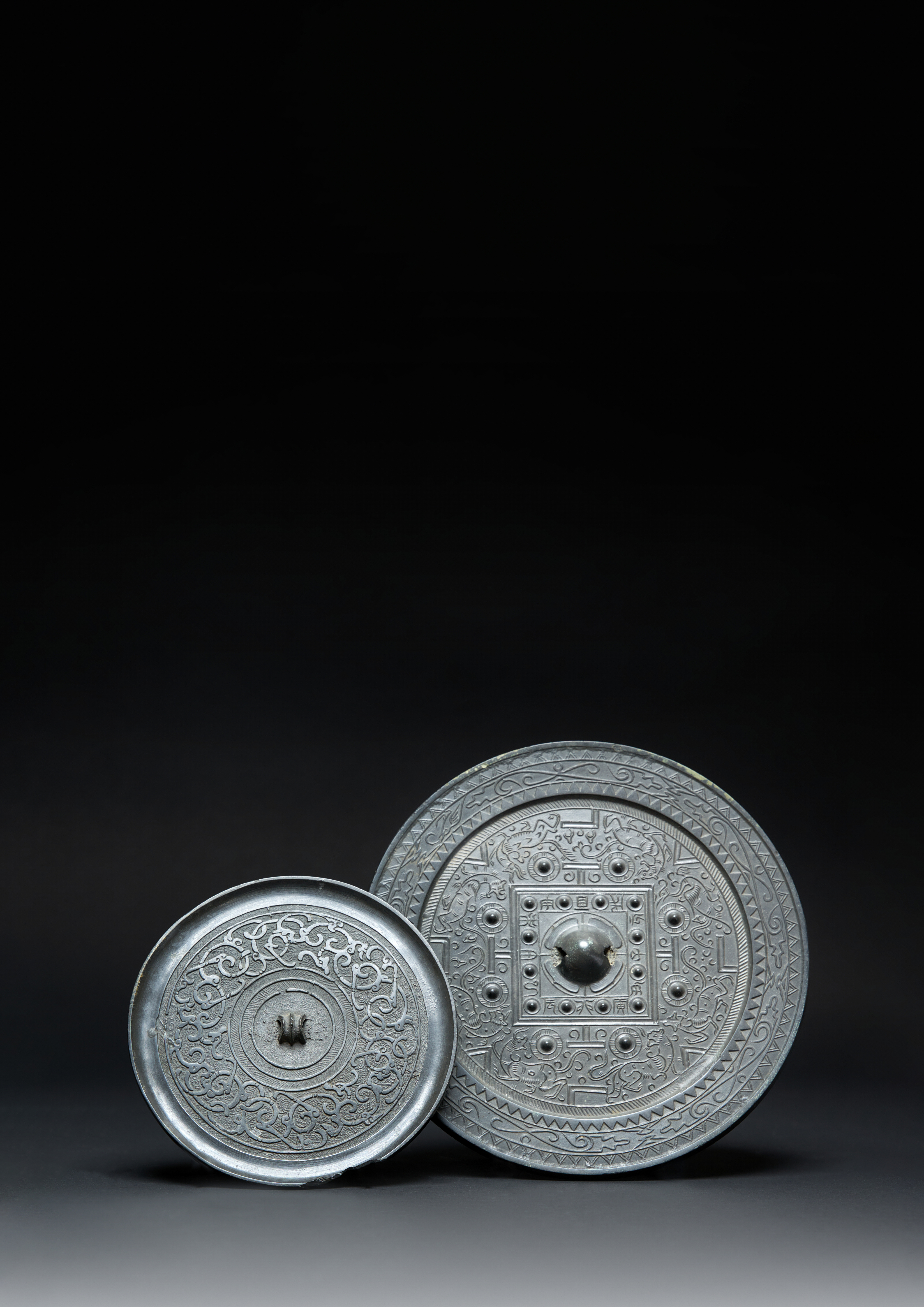 TWO CHINESE BRONZE CIRCULAR MIRRORS