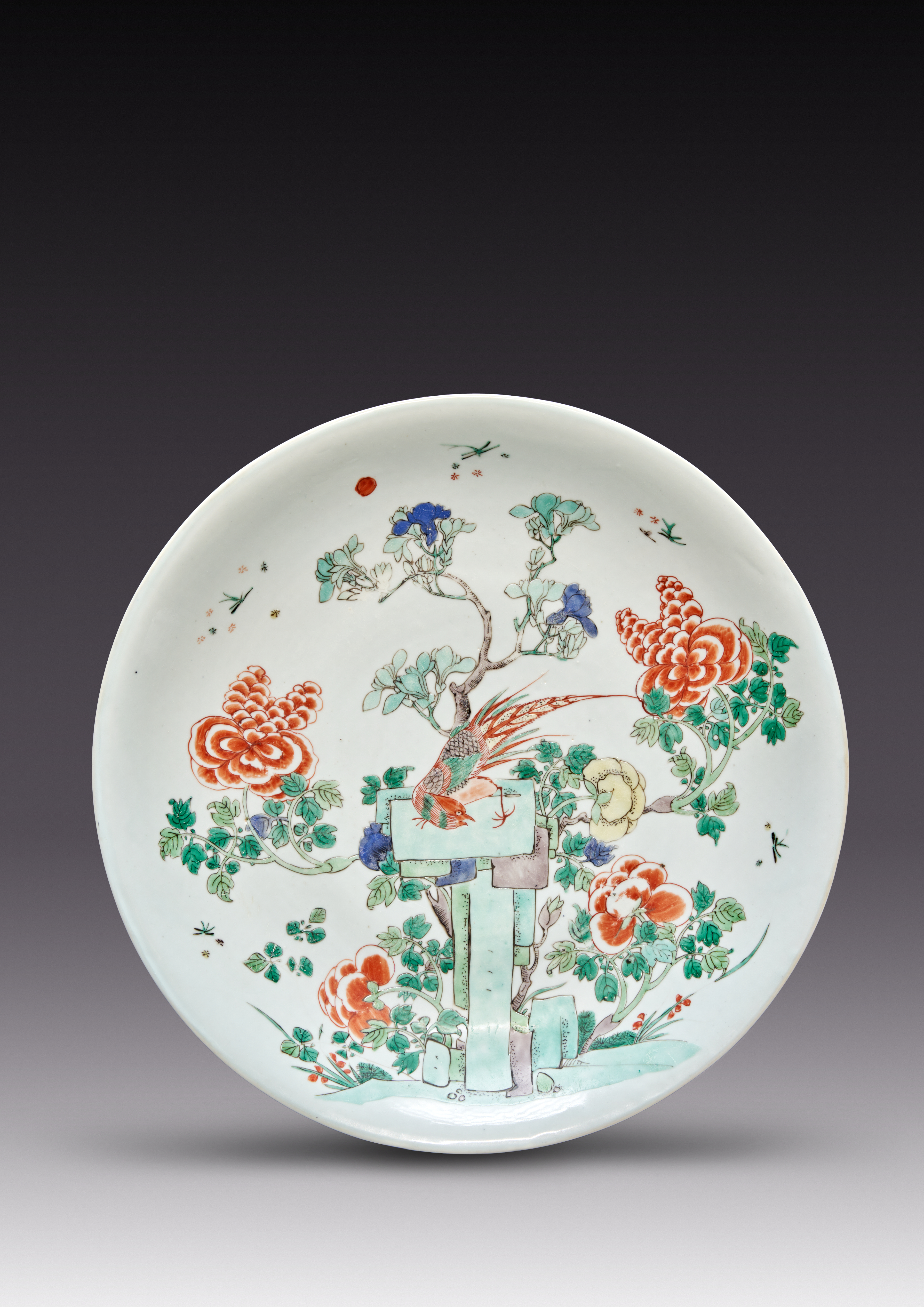 A CHINESE FAMILLE VERTE 'PHEASANT AND PEONY' DISH