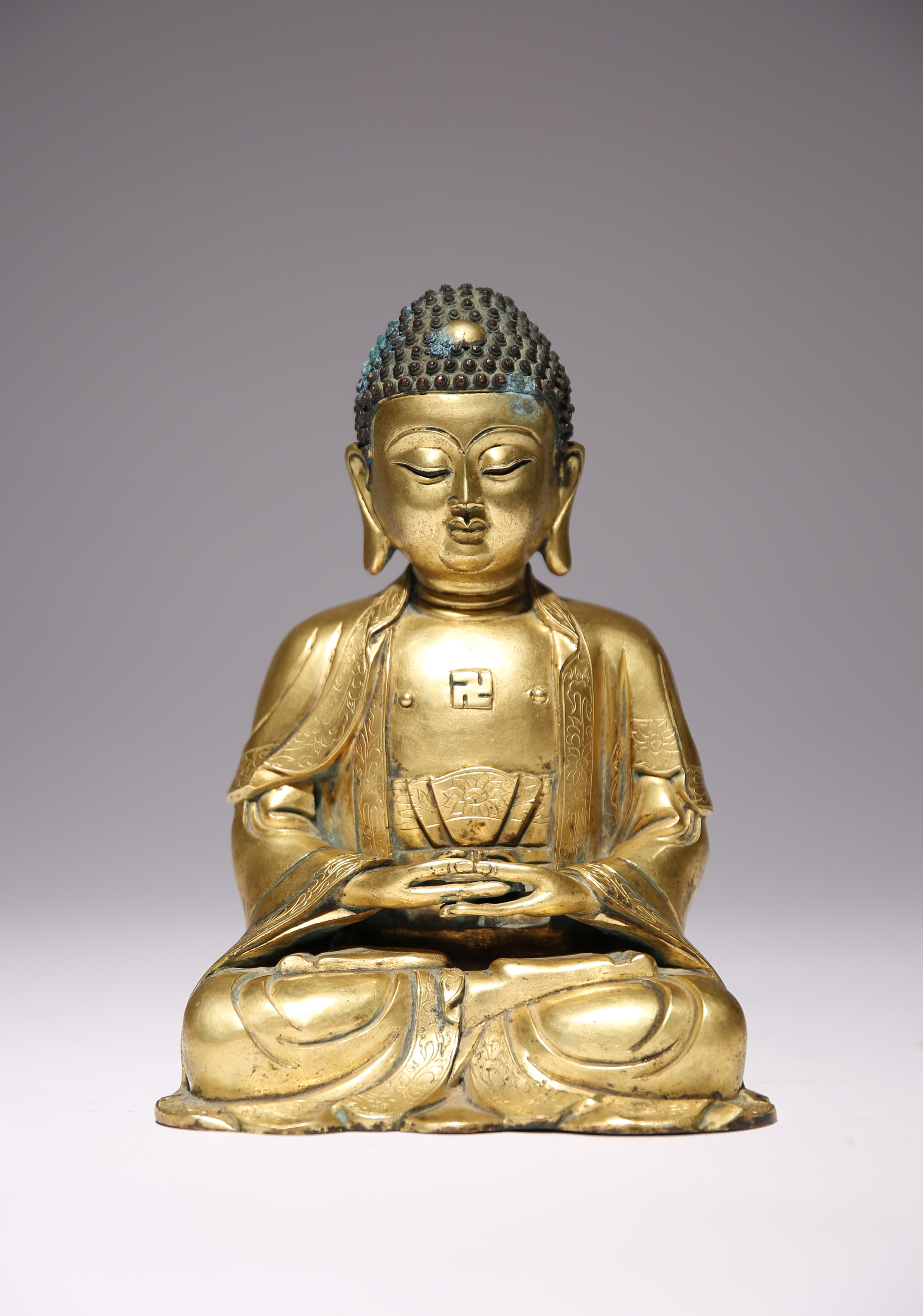 A CHINESE GILT-BRONZE SEATED FIGURE OF BUDDHA
