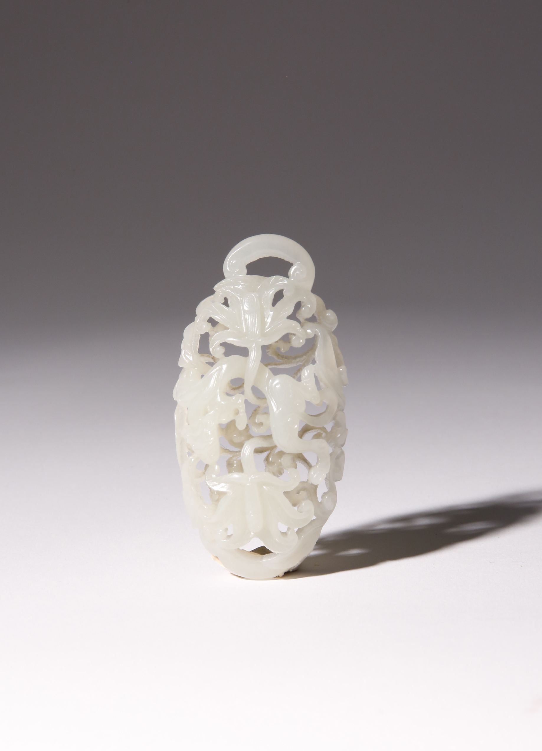 Elaborately carved with a chilong climbing amidst lotus flowerheads and scrolls, 6.8cm.