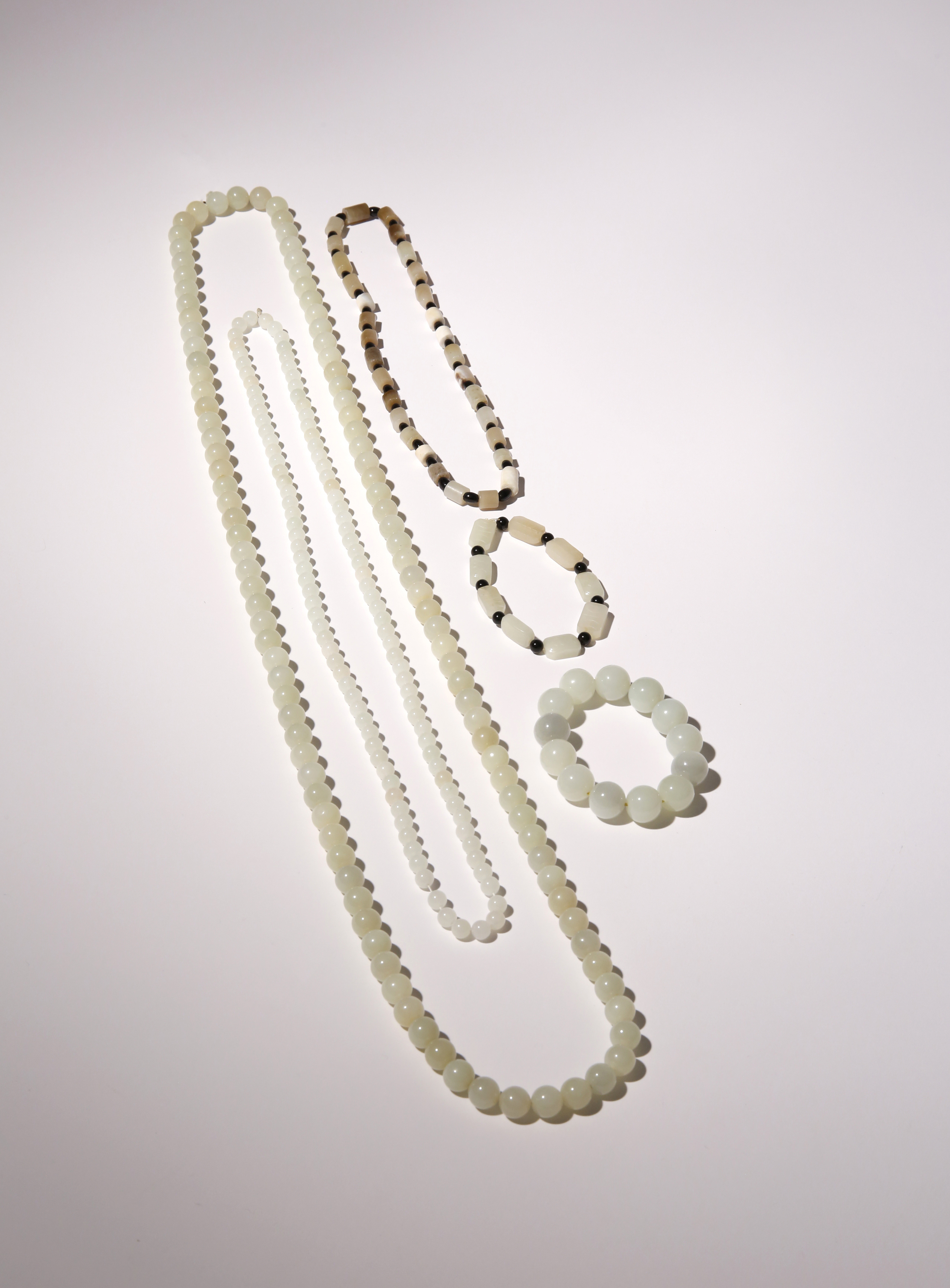 TWO WHITE JADE BEAD NECKLACES