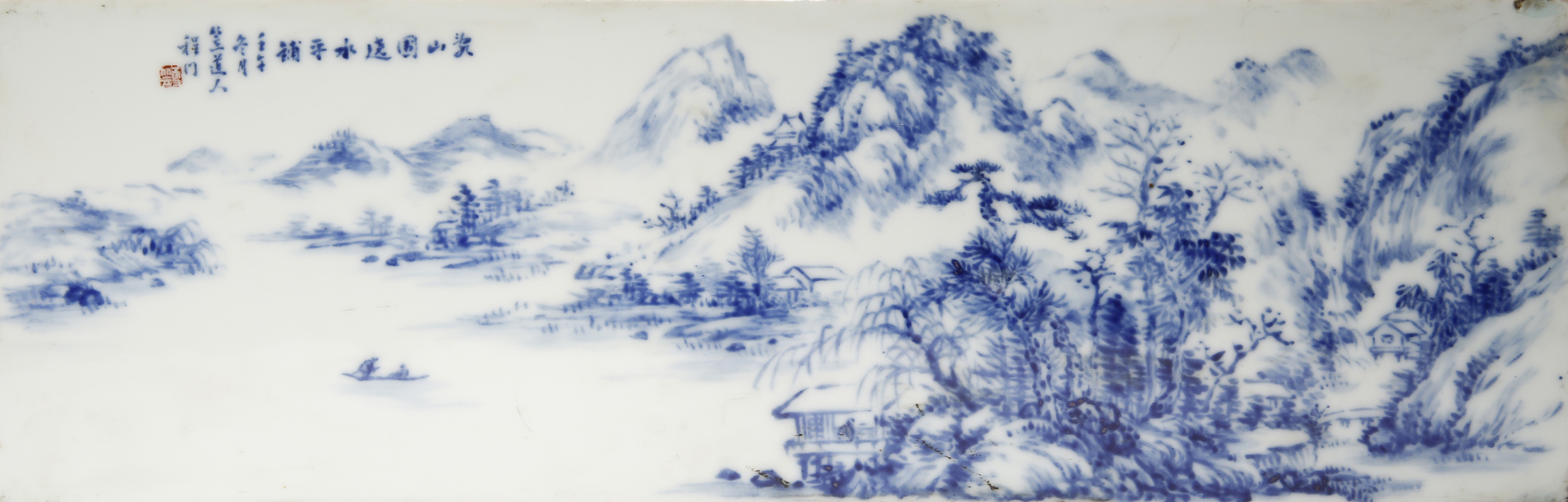 A CHINESE BLUE AND WHITE 'LANDSCAPE' PLAQUE